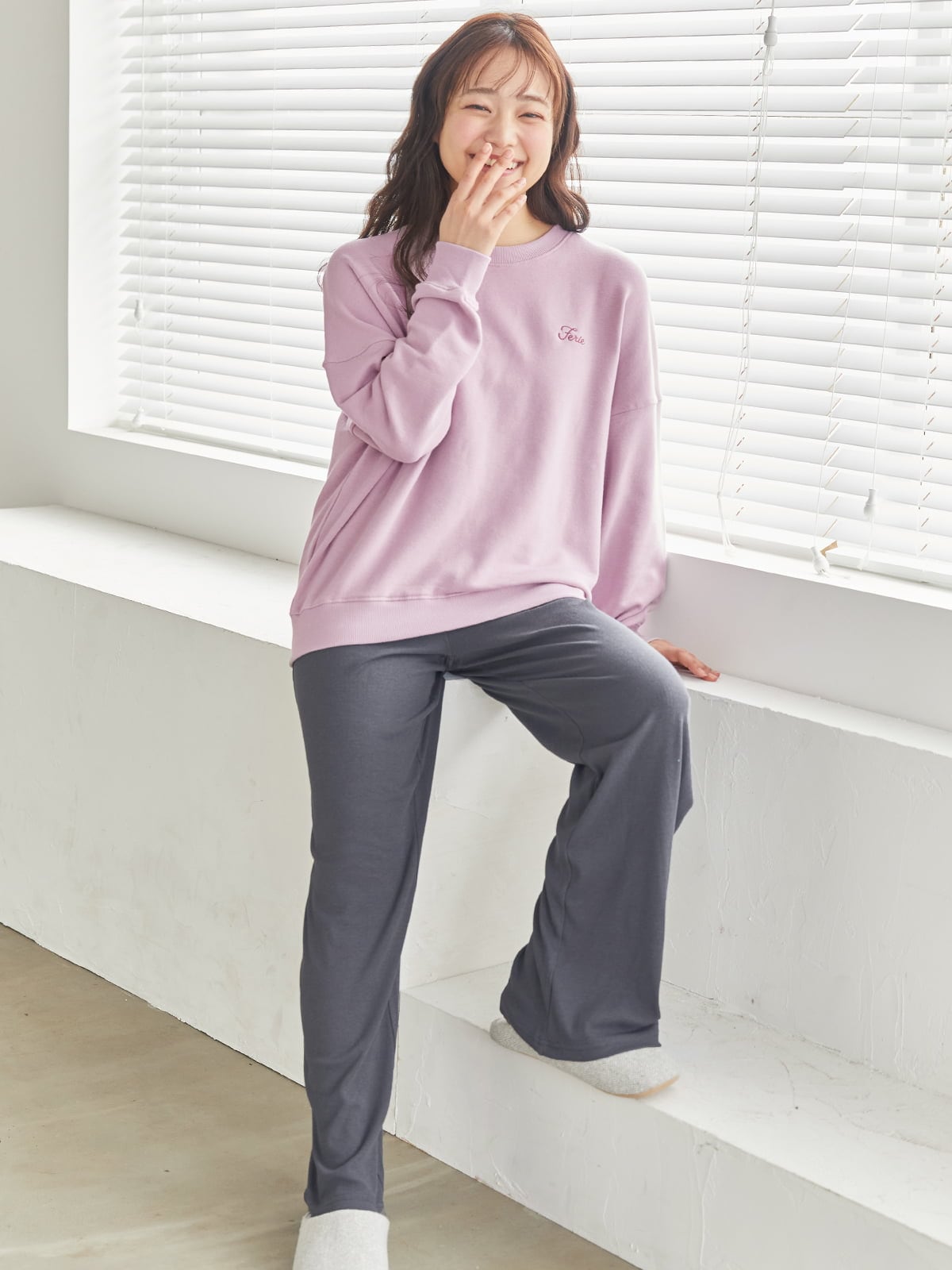 チュチュアンナ レディース ルームウェア トップス 単品 コットン 綿混 スウェット 長袖 [温度調整]ロゴ刺繍裏毛プルオーバー ルームウェア