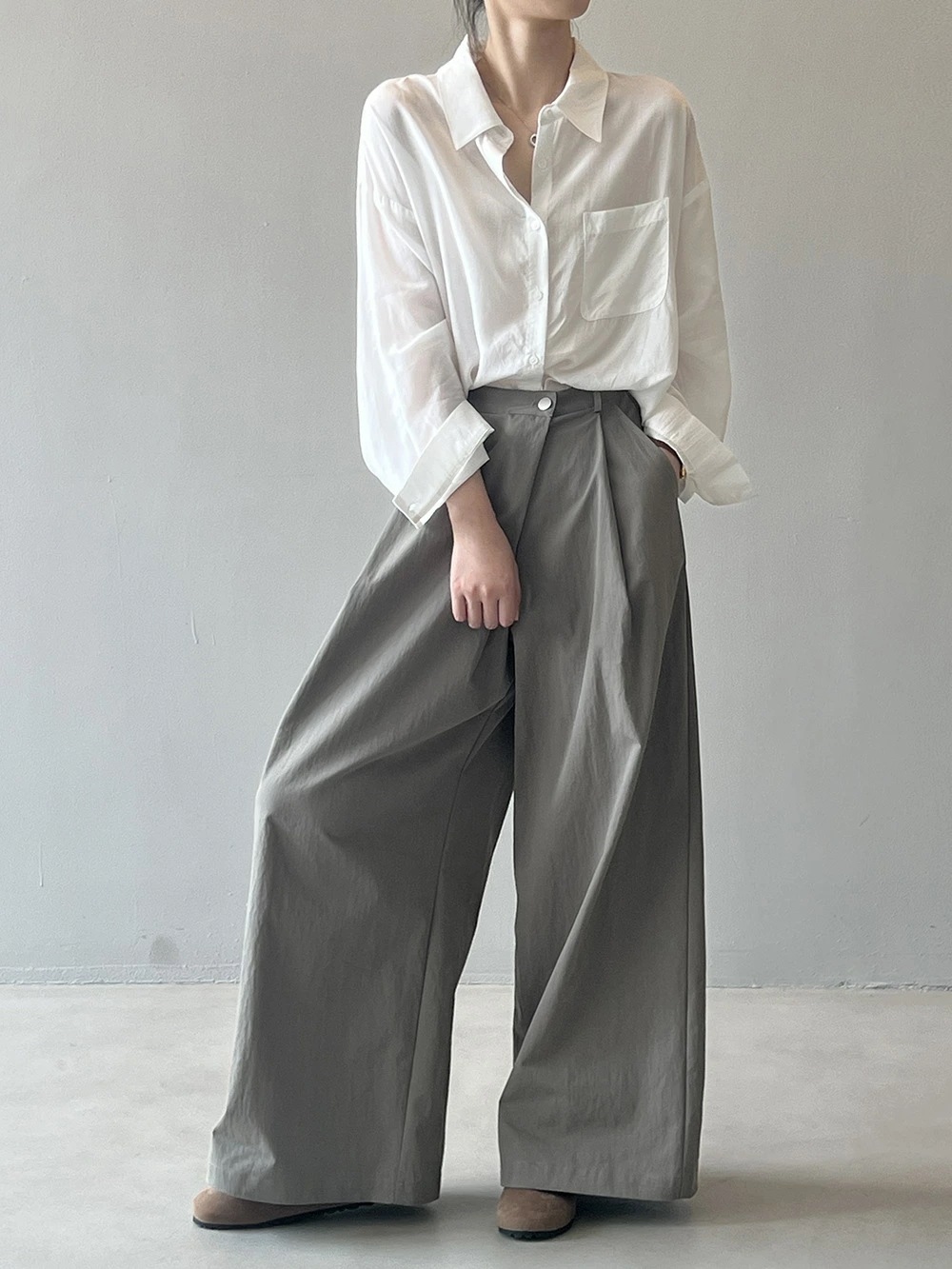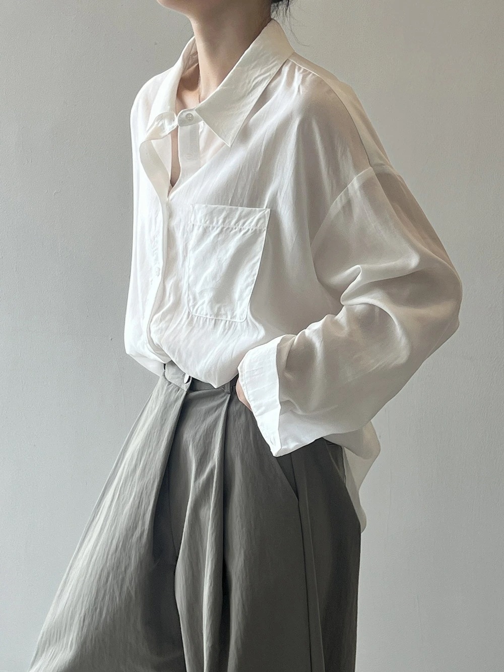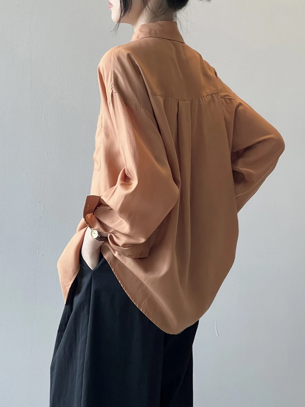 ブラウス シャツ レディース 長袖 トップス 羽織 重ね着 レイヤード ドロップショルダー お尻が隠れる 無地 襟 Vネック チュニック 大きいサイズ 体型カバー おしゃれ カジュアル ナチュラル