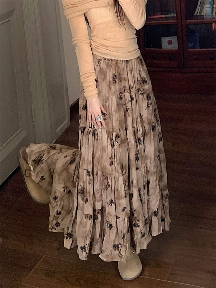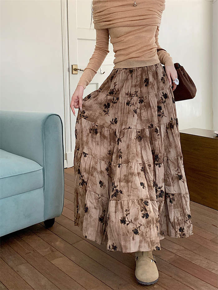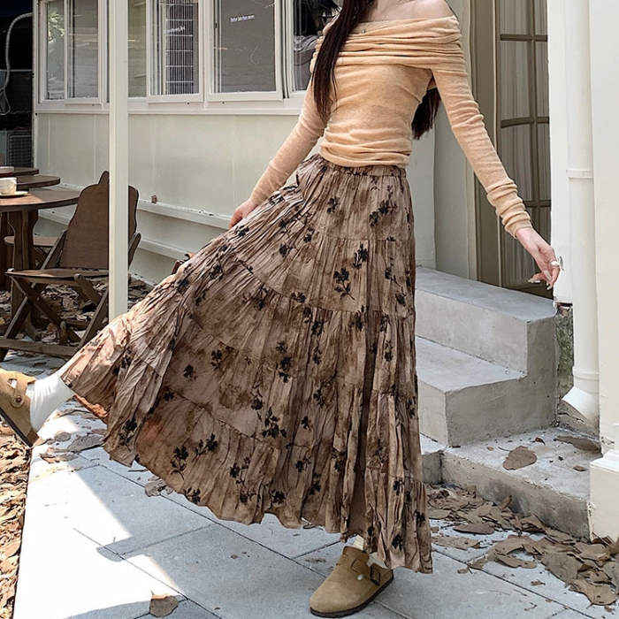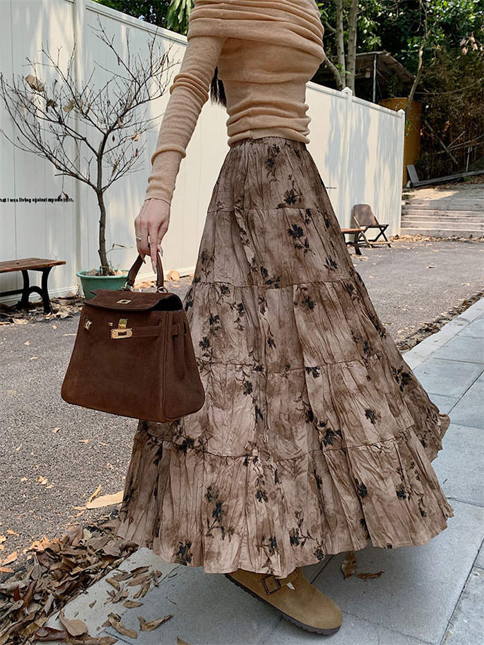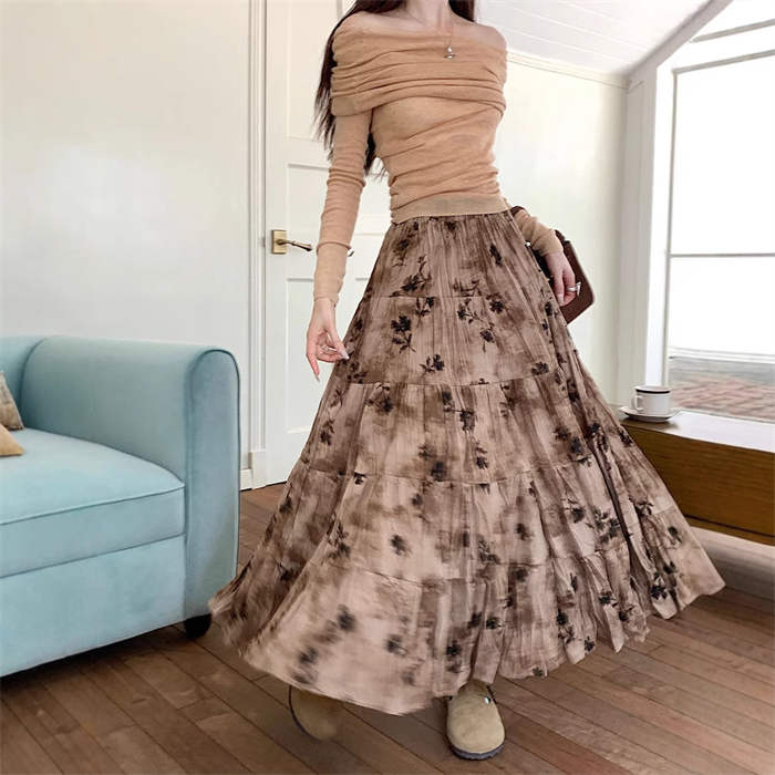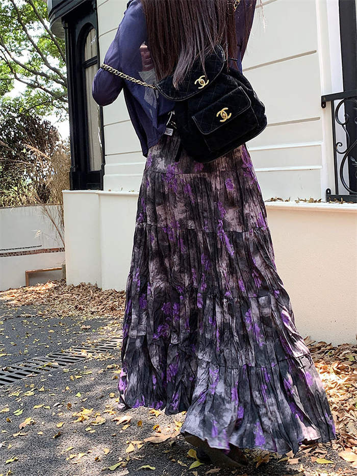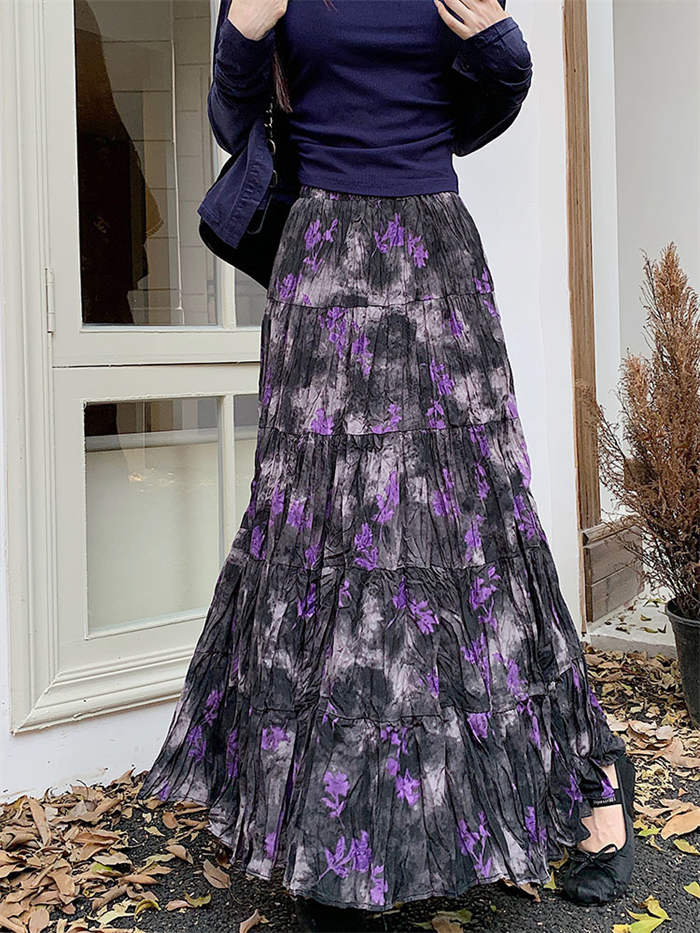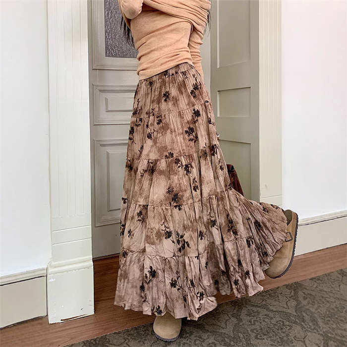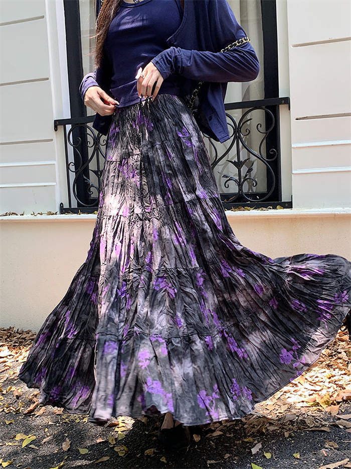 フレアスカート レディース スカート 花柄スカート 春 夏 秋 ロングスカート マキシ丈 花柄 ボトムス Aライン フレア ウエストゴム ハイウェスト プリーツスカート 体型カバー お出かけ ふんわり