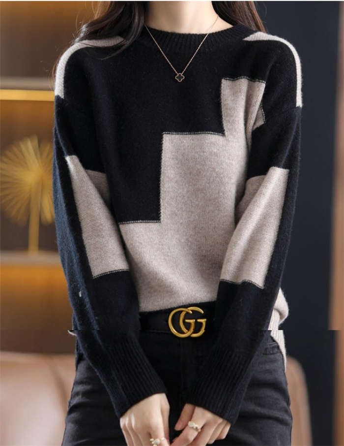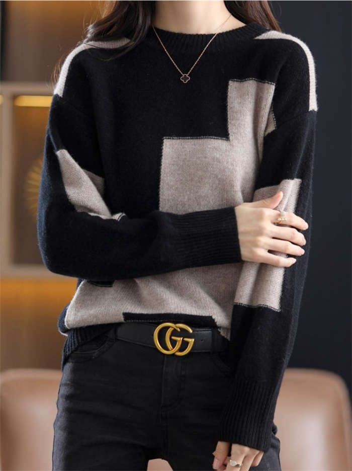 セーター レディース 秋冬 長袖 ニット ニットセーター ニット セーター トップス プルオーバー 秋冬 春 クールネック 長袖 配色セーター カジュアル シンプル 体型カバー きれいめ おしゃれ