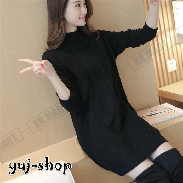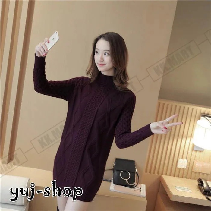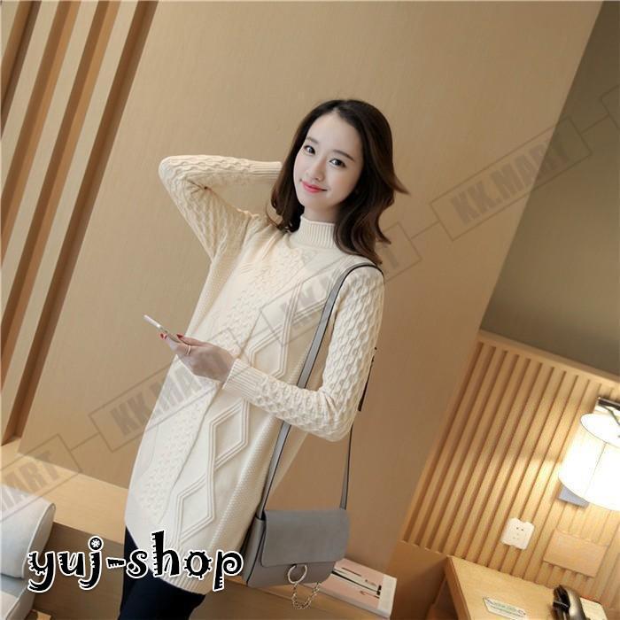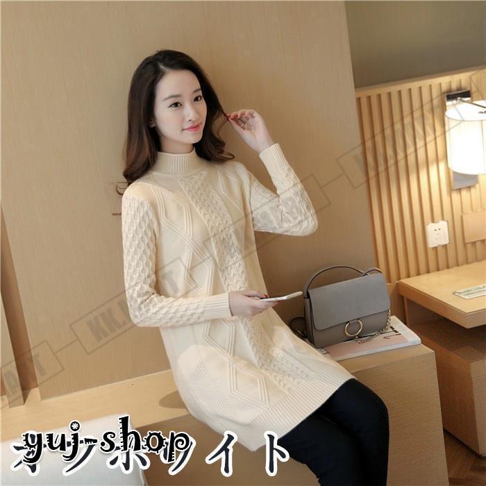 ニット ロング レディース セーター タートルネック ケープル編み ロングニット 長袖 ニットワンピース ニットセーター 秋冬 チュニック ニットウェア 40代 50代