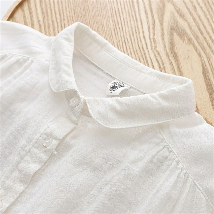 シャツ レディース 長袖 綿100% ブラウス ガーゼ おしゃれ 面接 トップス ダブルガーゼ コットン 丸襟 前開き カジュアル 無地 チェック柄 体型カバー 通勤 オフェス シンプル 着回し ガー