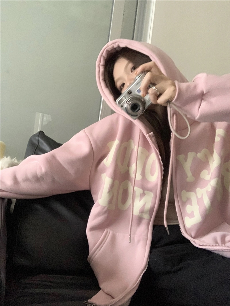 パーカー 今年 秋冬 韓国裹起毛 防寒かわいい レディース フード付きアウターフーディーロゴブルゾン長袖シルエットトップス冬カジュアルファッション系サイズお出かけフル丈高校生 通学大学生トラック
