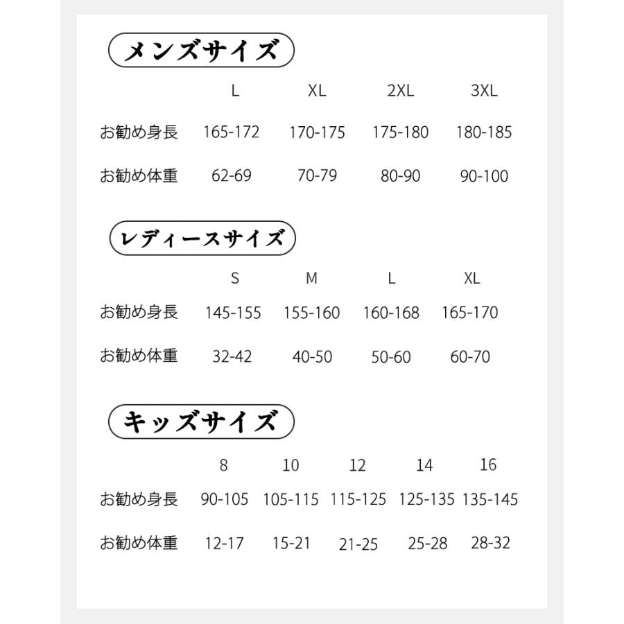 サイズ: 8(キッズ) 10(キッズ) 12(キッズ) 14(キッズ) 16(キッズ) S(メンズ) L(メンズ) XL(メンズ) L(レディース) XL(レディース) 2XL(レディース) 3XL(レディース)