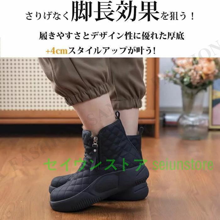 ノーブーツ レディース 厚底スニーカー 外秋冬 暖かい 滑り止め ショートブーツ 厚底 美脚 シークレットシューズ ハイカット レースアップ 女性用