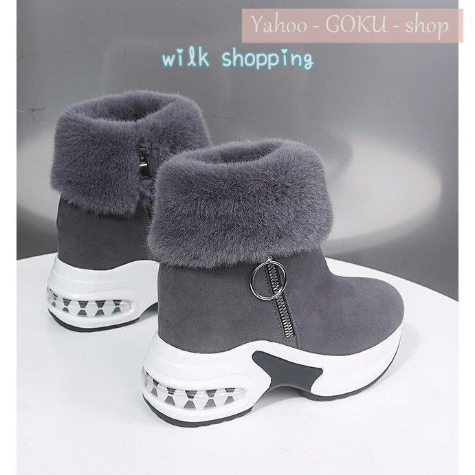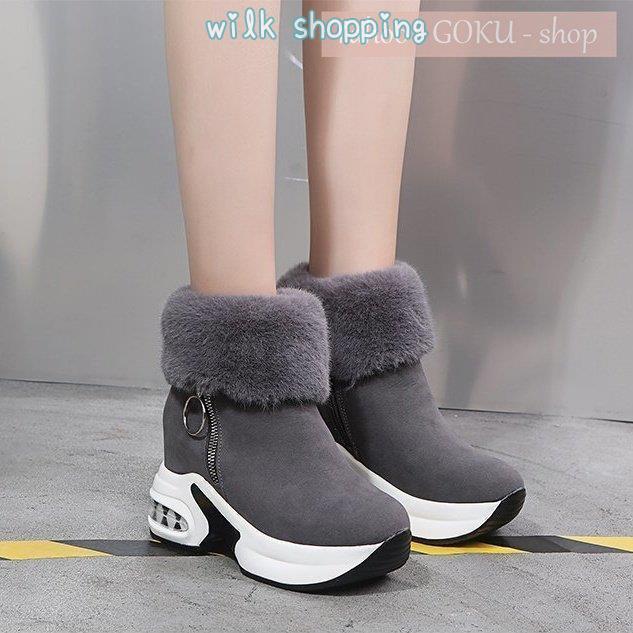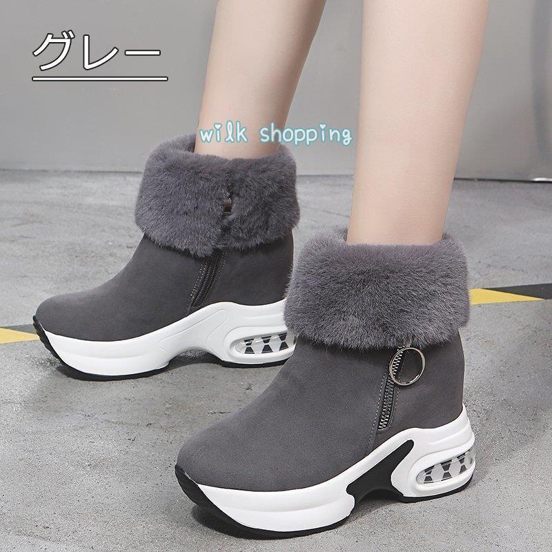 ムートンブーツ ボア 裏起毛 ファー レディース スノーブーツ ショートブーツ 厚底 インヒール ファッション 美脚 脚長 お洒落 背が高くなる