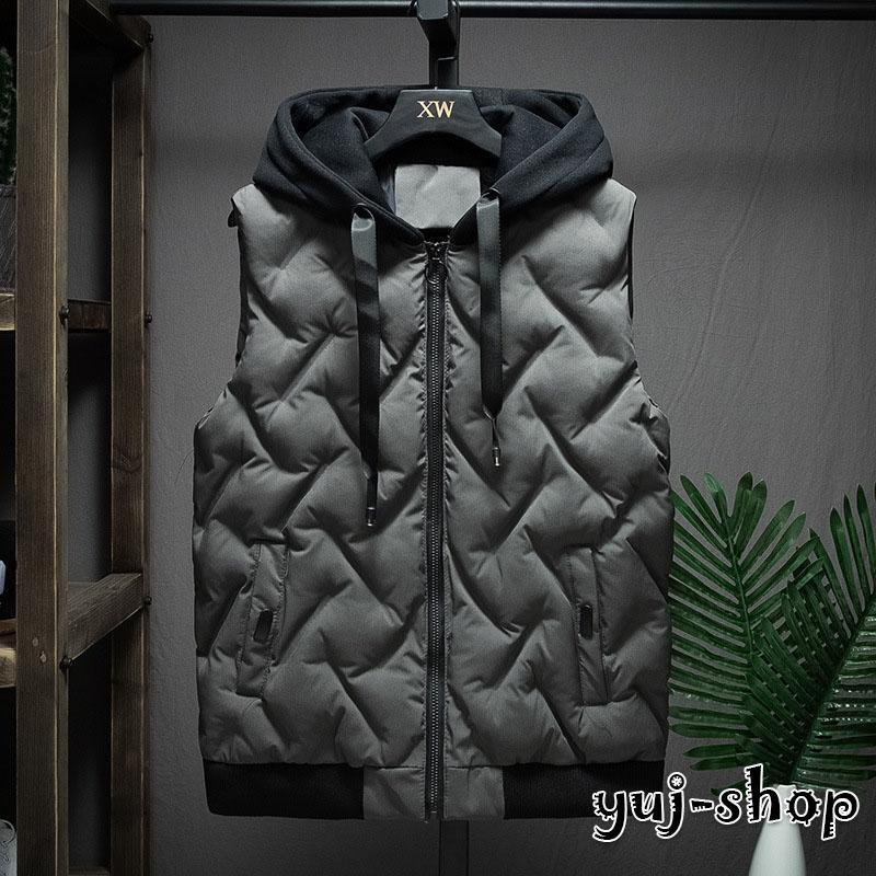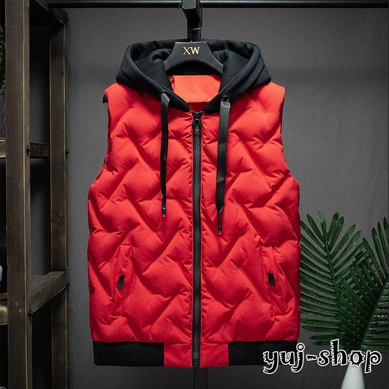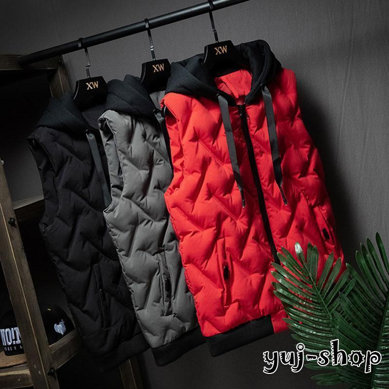 ダウンベスト ジャケット 袖なし フード付き メンズ インナーベスト 厚手 防寒 登山 防風 中綿ベスト ウルト 軽量 暖かい アウトドア 秋冬 冬服 大きい