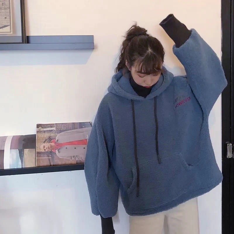 パーカー ゆったりスウェット 裹起毛 冬フェイクレイヤード ラムズウール 厚手ウォーム 長袖トップス ゆったり百掛け レディース パーカー