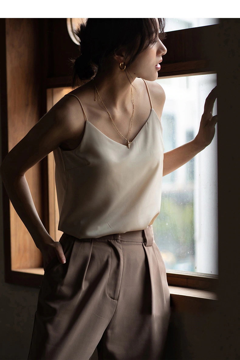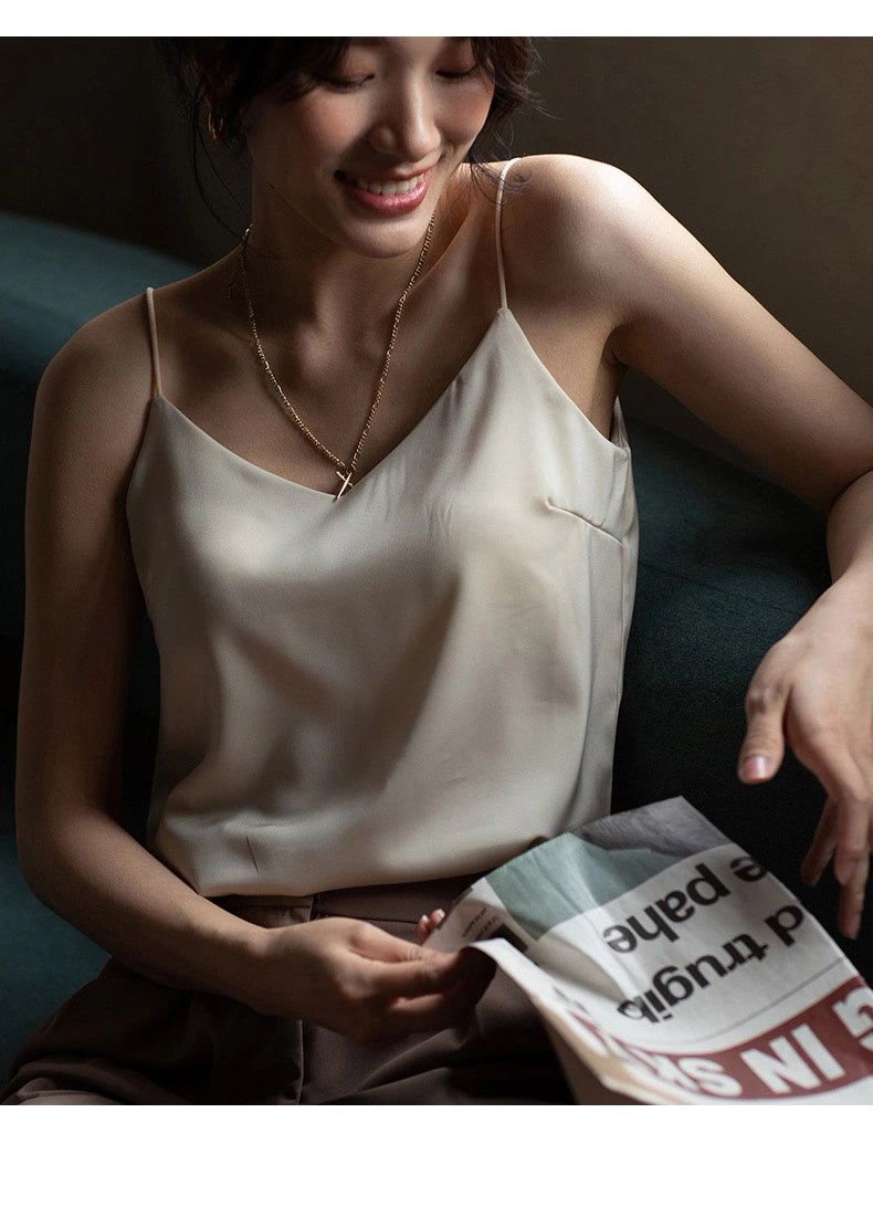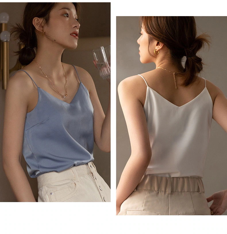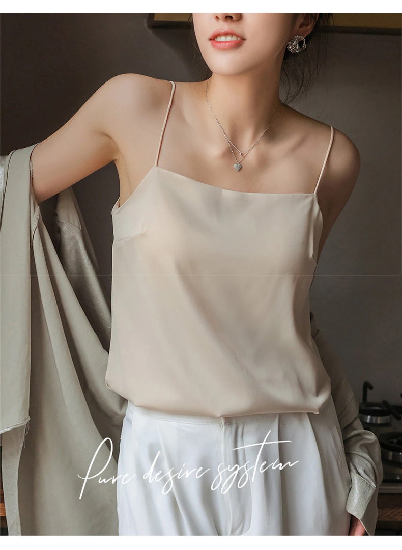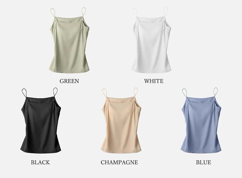 ブラ要らず セクシー キャミソール カップ付き サテンスリップ 光沢 重ね着 キャミソール 柔らかい 快適 肌優しい インナー ブラウス トップス タンクトップ オフィス 上品