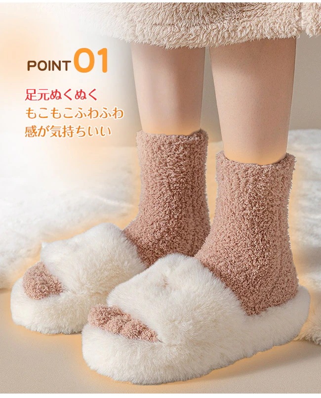 もこもこ靴下 ルームソックス 五本指 レディース 暖かい 着る毛布 冷えとり メンズ 暖房グッズ モコモコ靴下 厚手 冬 かわいい ボア 防寒 ふわふわ