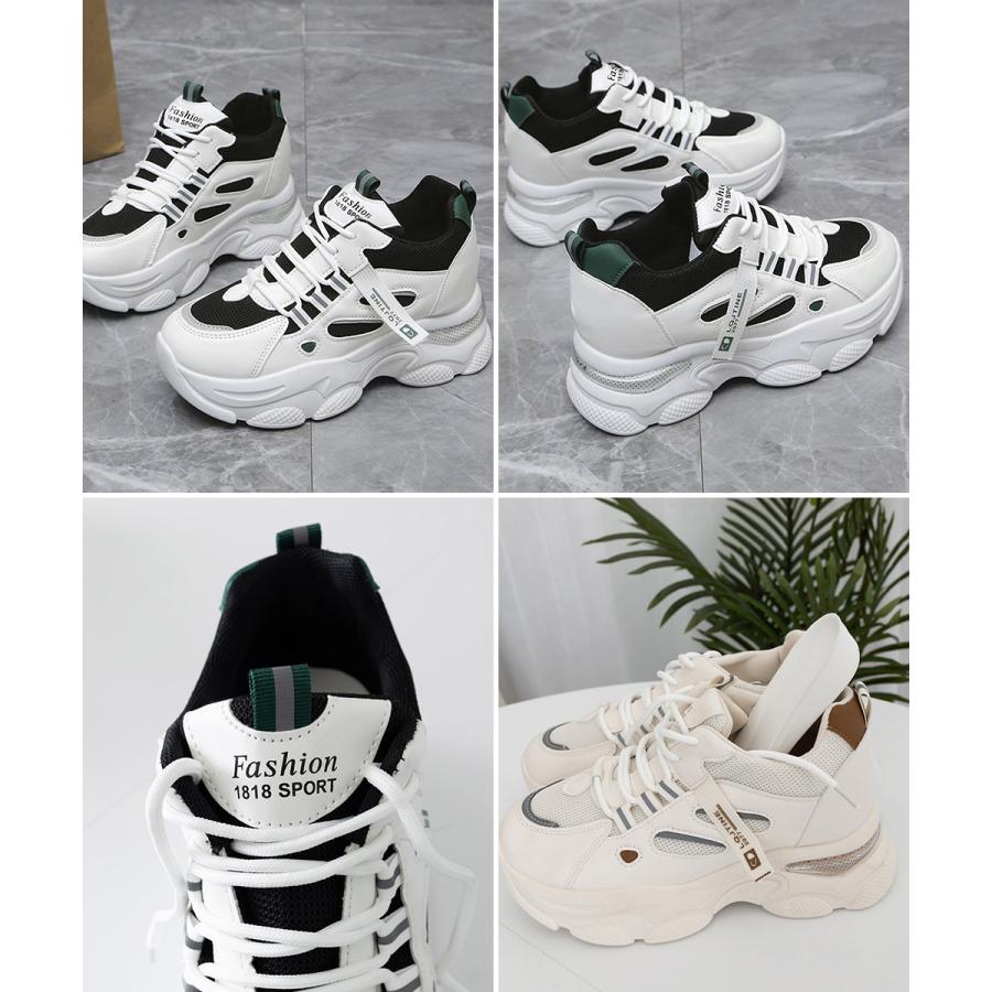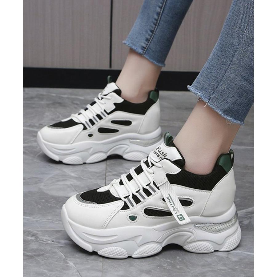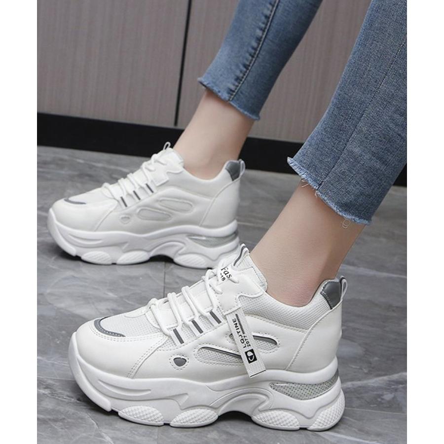 厚底ダッドスニーカー レースアップ 韓国 楽ちん フラットパンプス レディーススポーツシューズ