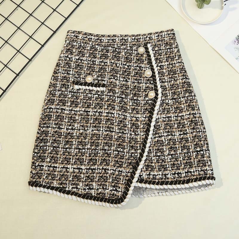 マキシスカート 不規則 格子柄 ハーフスカート レディース ハイウエスト Aラインスカート シングルブレスト ショートスカート 韓国ファッション