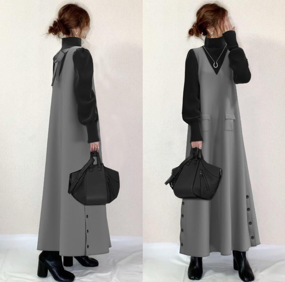 新作 シンプル ハイネック 切り替え ワンピース ロングワンピース ワンピース ワンピース 秋冬 長袖 Tシャツワンピース 大きめサイズ 長袖ロング マキシ丈ワンピ