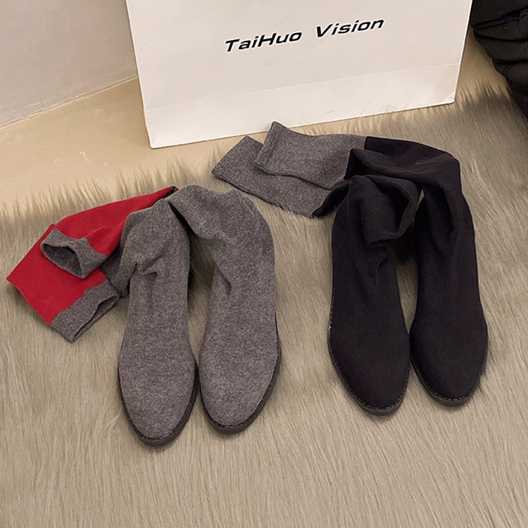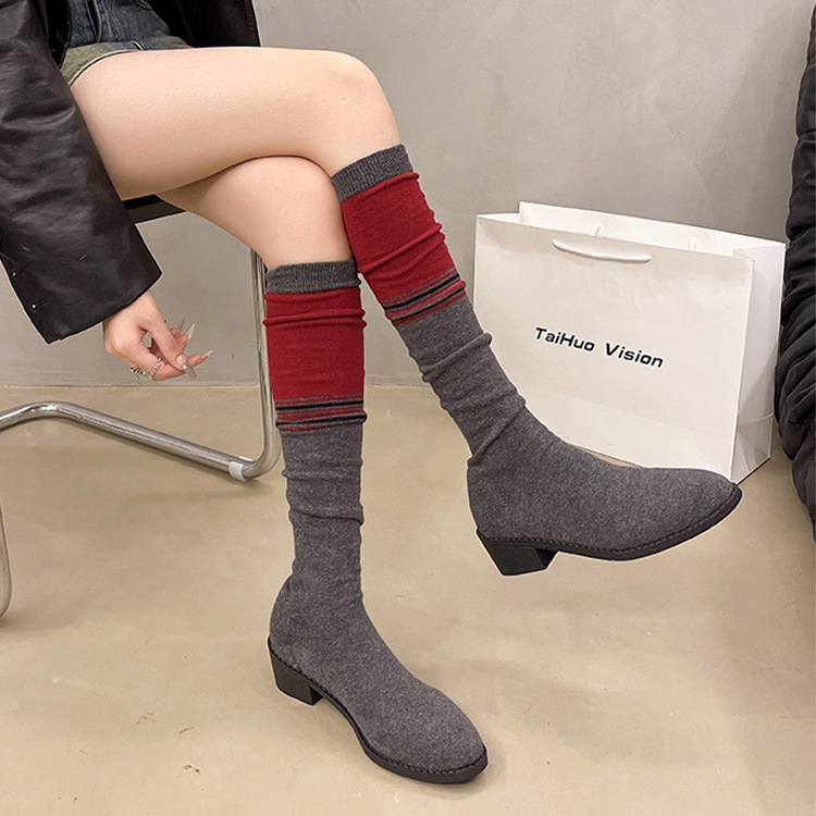 ソックスブーツ ブーツ レディース ニーハイブーツ ストレッチ ブーツ 美脚 チャンキーヒール 膝丈 4.5cmヒール ハイカット 韓国風 シューズ 靴 太ヒール カジュアル おしゃれ