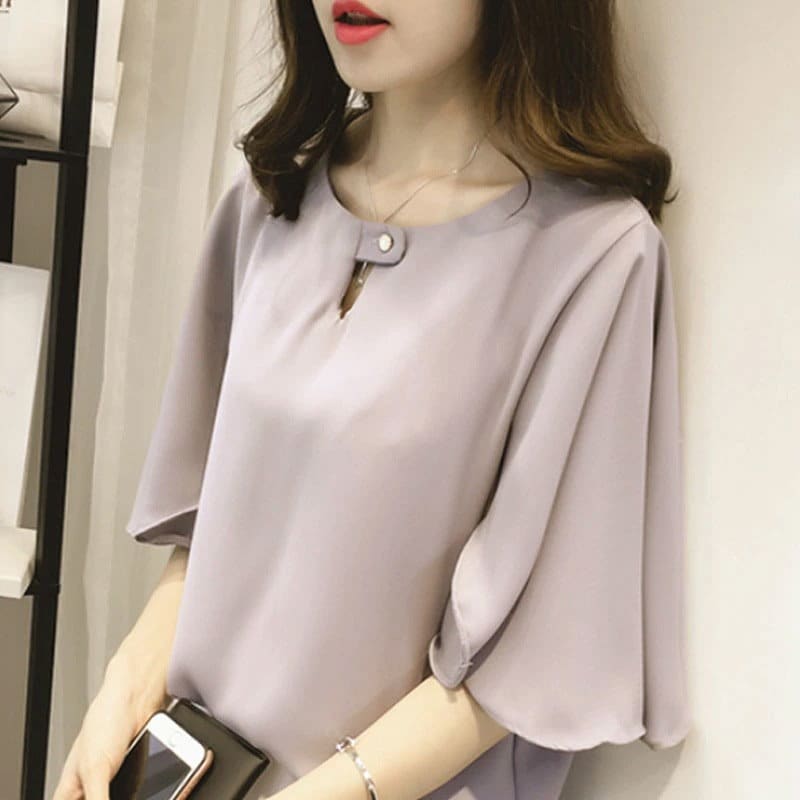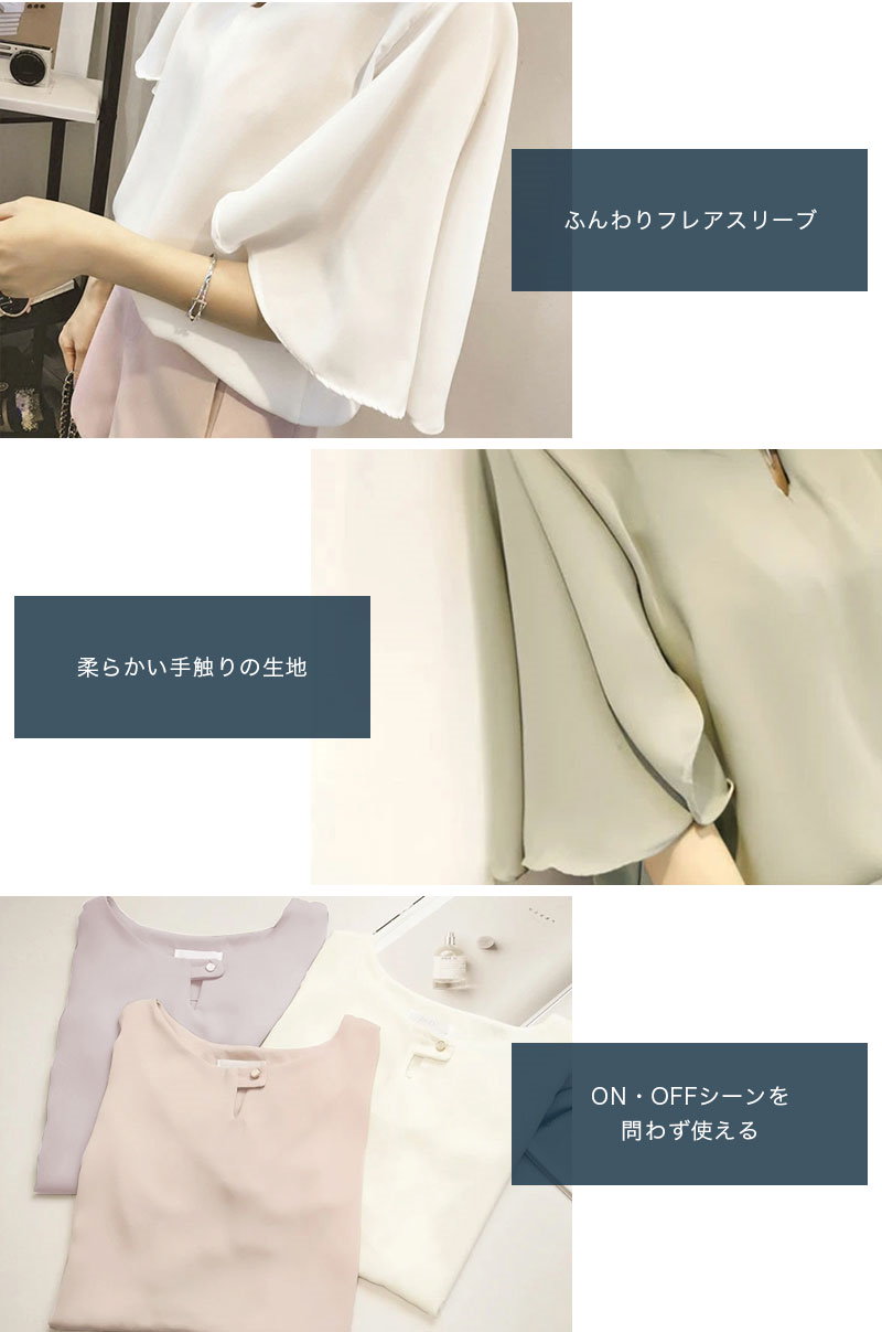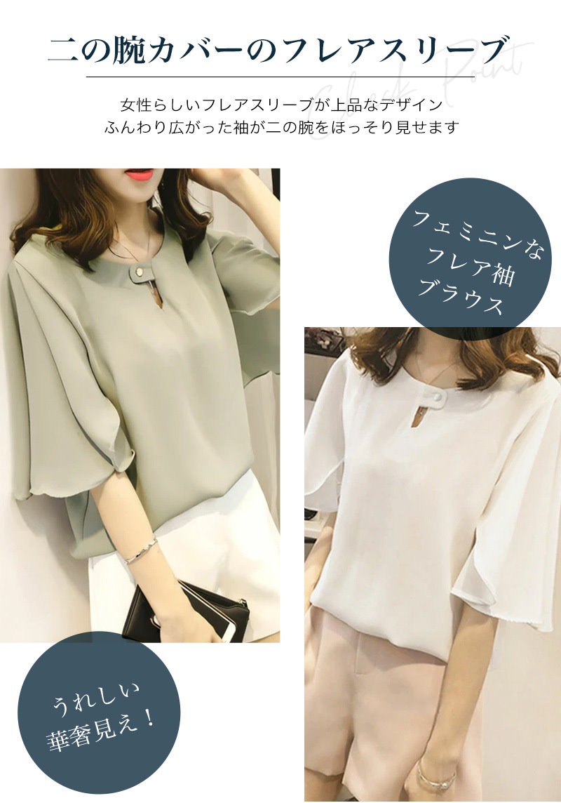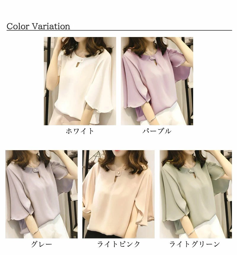 綺麗め可愛いお洒落ブラウス レディース フレアスリーブ 半袖 シフォンブラウスTシャツカットソートップス 体型カバープルオーバー 通勤通学オフィスお出掛け 着回し 韓国ファッション