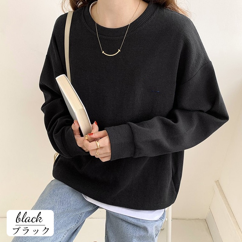 ラウンドネック 長袖 メロウ フリル ボーダー ニット トップス カットソー ツートーン メロー おしゃれ 無地 かわいい シンプルモノトーン 春 秋 冬