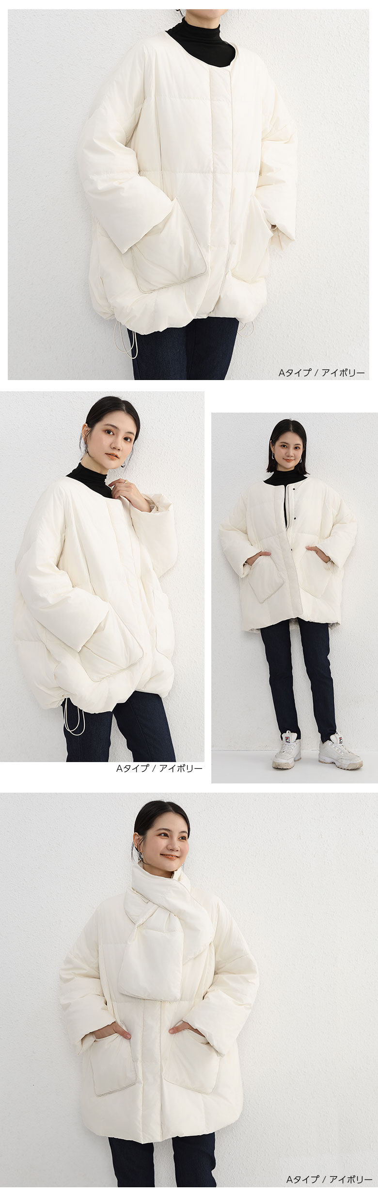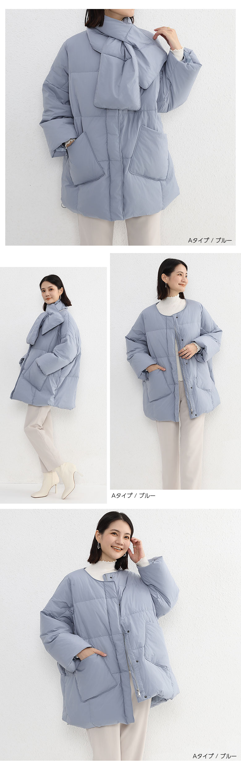 ダウン90% ダウンジャケット軽量 マフラー付き ノーカラー ダウンコートダウンジャケット ダウン&フェザー 襟なし コートあったかアウター アウター カジュアル レディース 通勤
