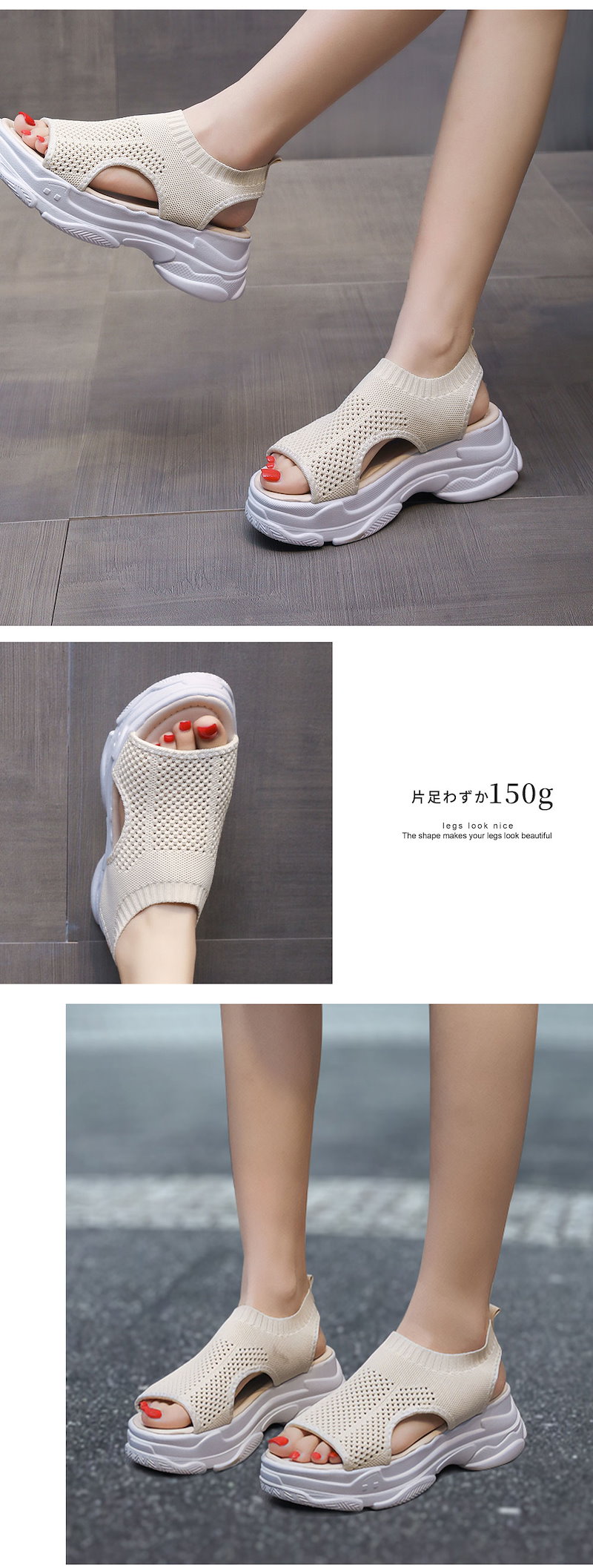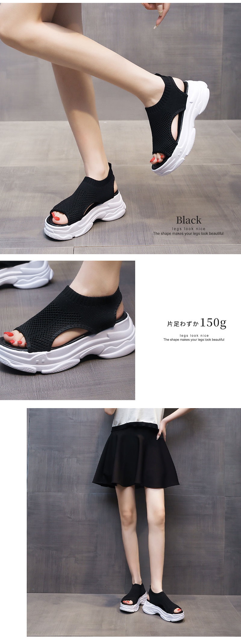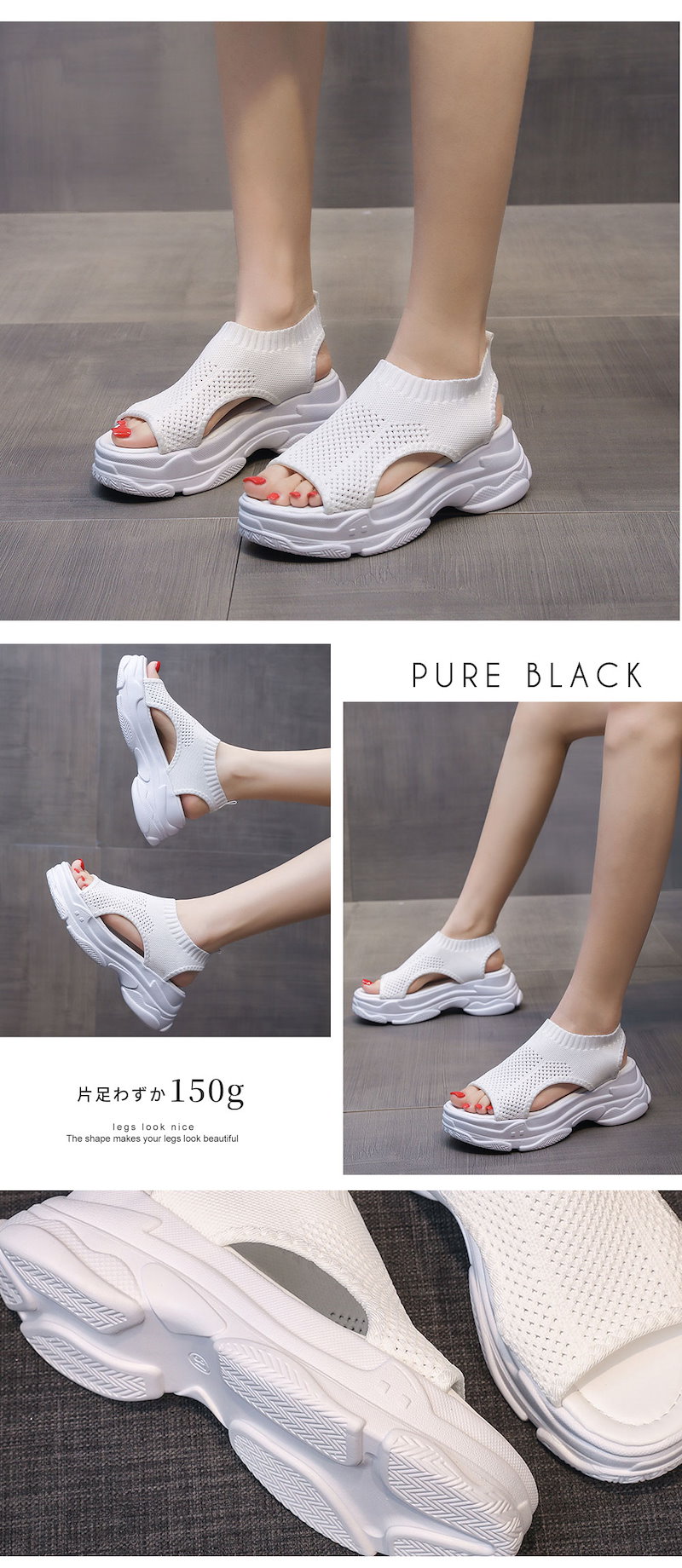 新作追加 厚底 美脚 ニットサンダル最旬トレンドスタイル スニーカー シューズ 靴 厚底 靴 疲れない サンダル