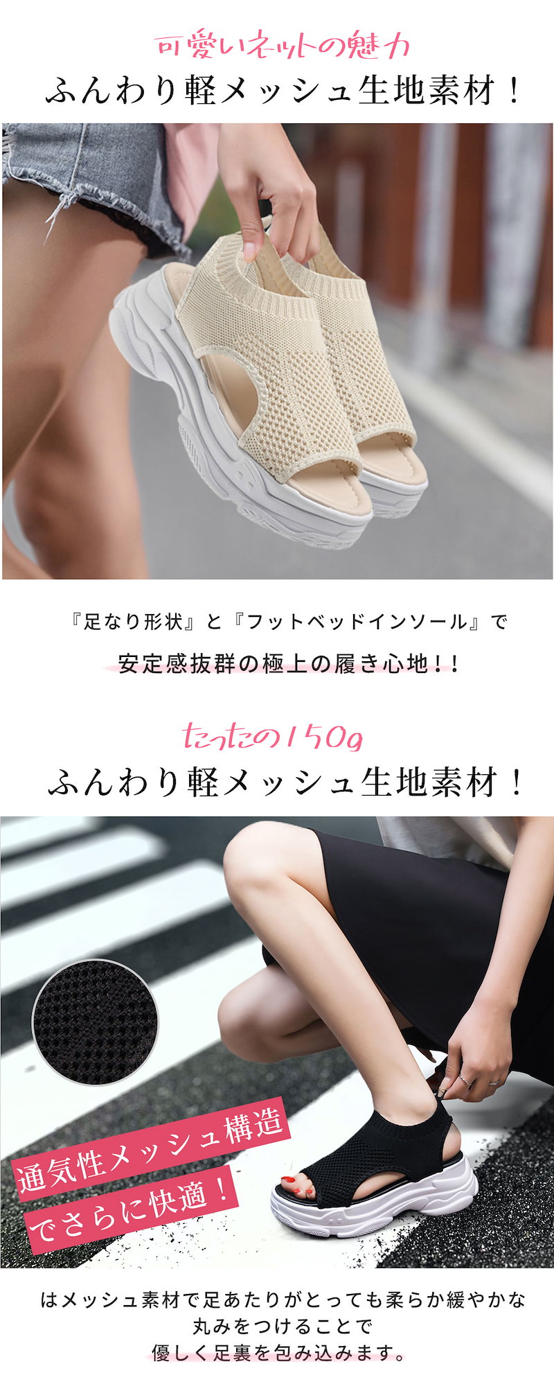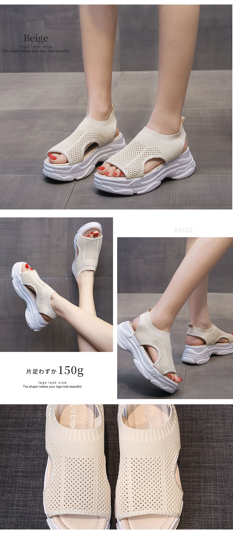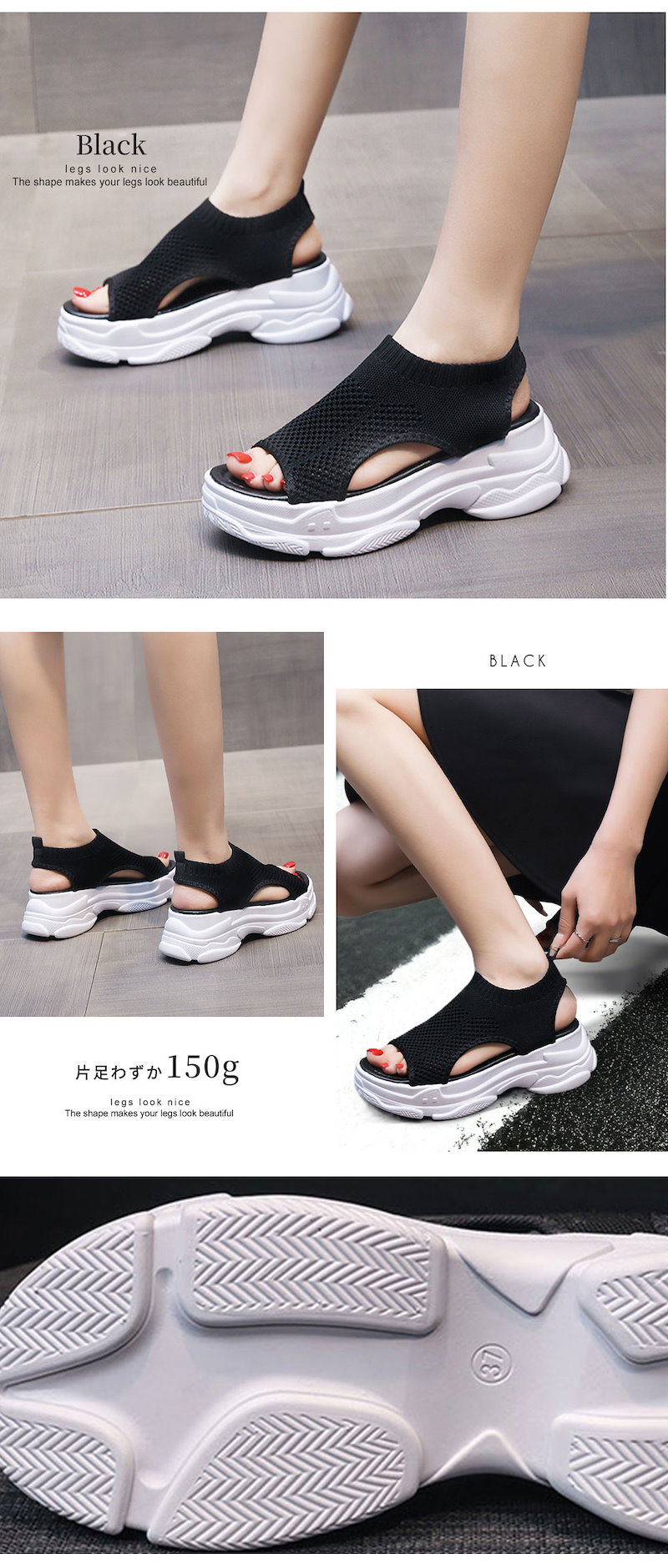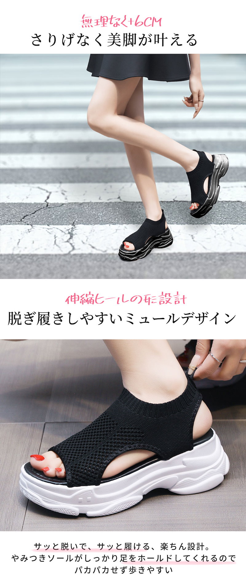 新作追加 厚底 美脚 ニットサンダル最旬トレンドスタイル スニーカー シューズ 靴 厚底 靴 疲れない サンダル