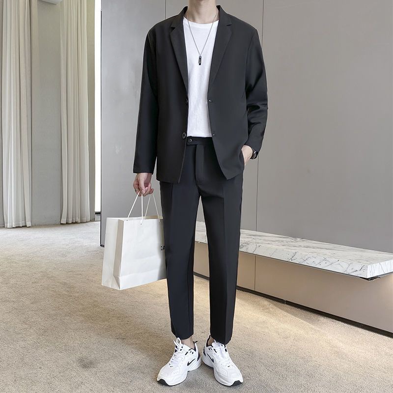 スーツ メンズファッション トレンド スーツジャケット+半袖tシャツ+ズボン セットアップ 上下 3点セット セットアップ