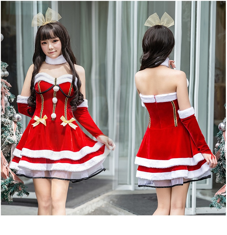 韓国版 日系 ハロウィン クリスマス 舞踏会 パーティー セクシー 舞台ショー服 欧米女の人 サンタクロース コスプレ服装 趣のある制服 3つのセット QRP07
