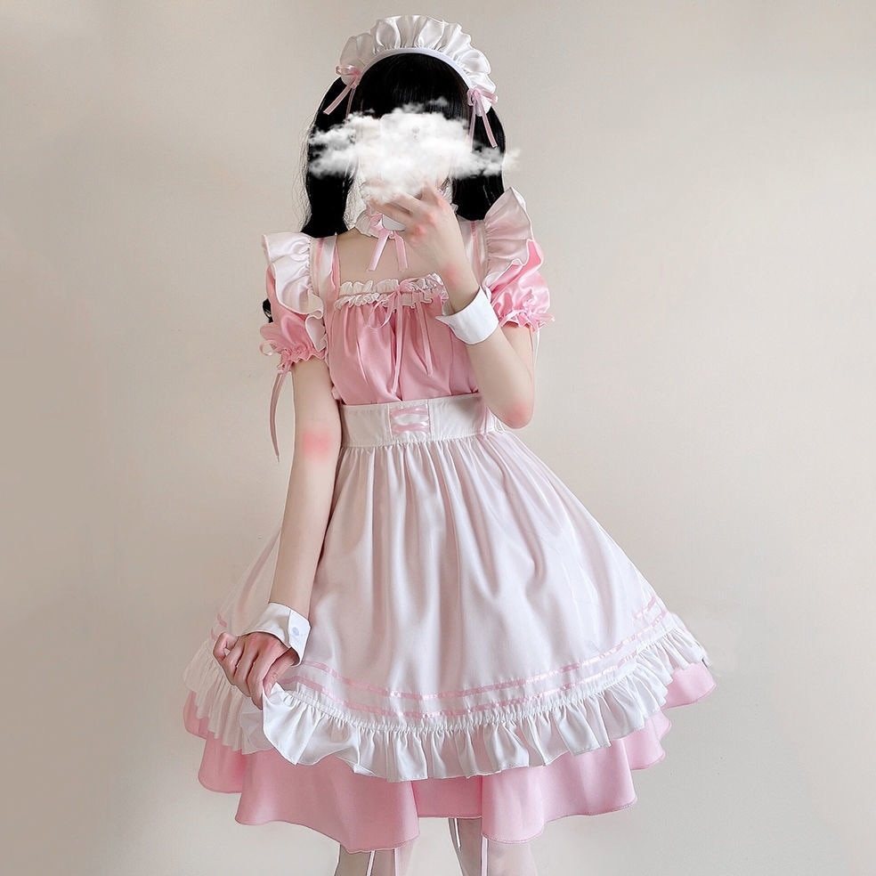 情趣の誘惑ロリータワンピース コスプレ 衣装 アニメ かわいい メイド服 仮装パーティーpink ワンピース コスチューム