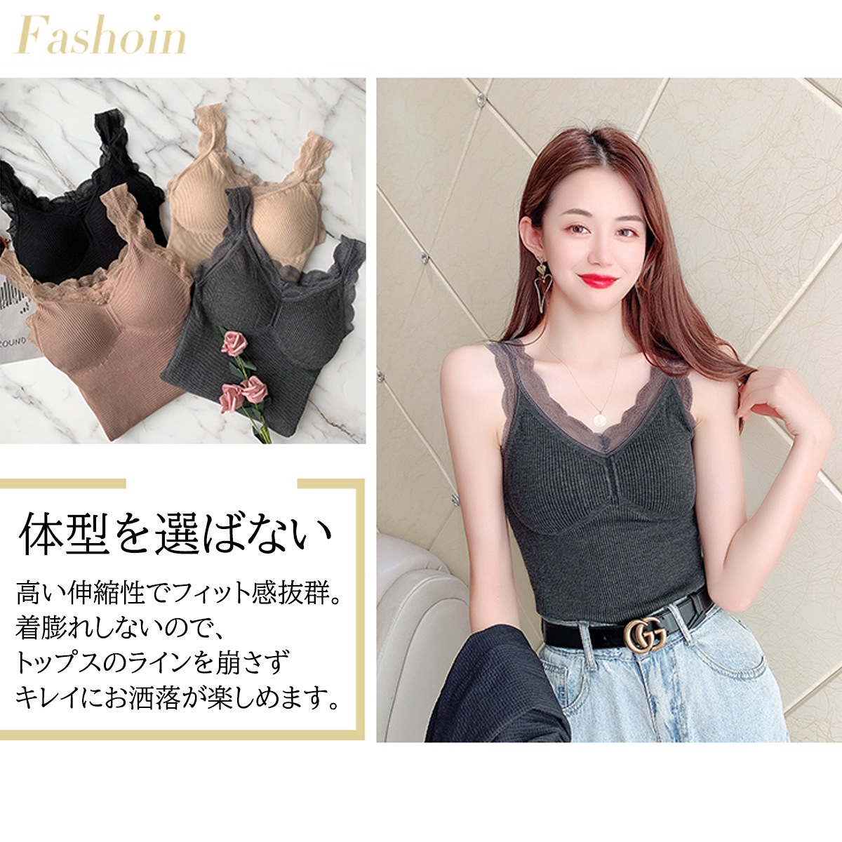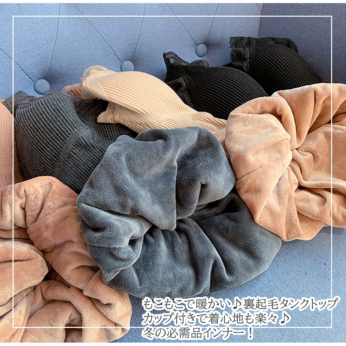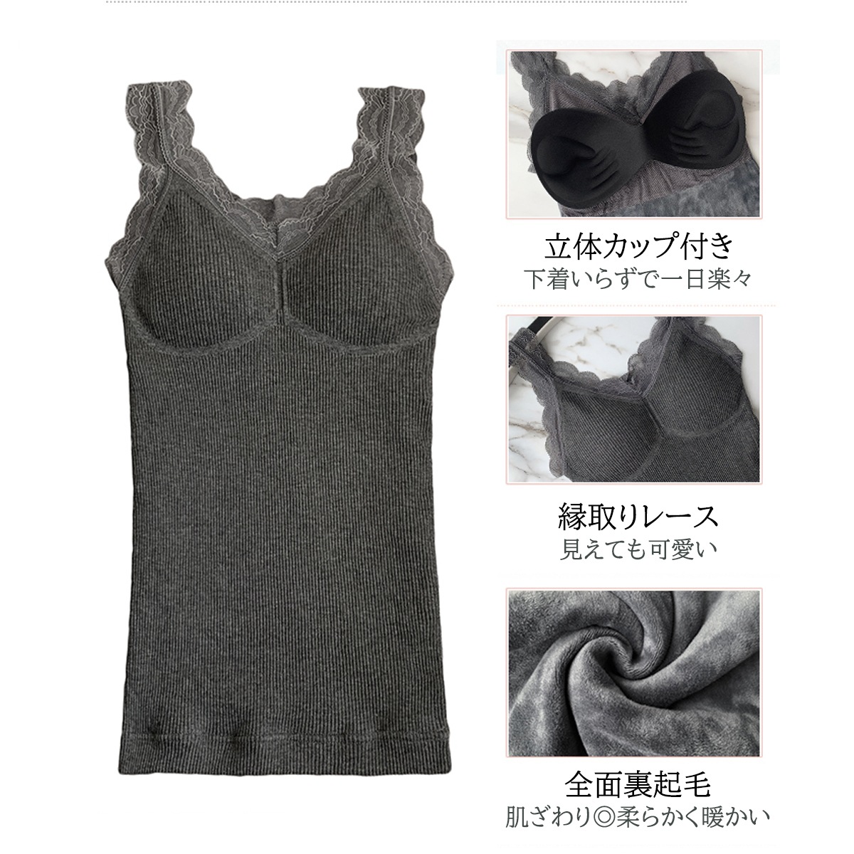 レディース インナー 裏起毛 カップ付き タンクトップ キャミソール ナイトブラ ヒートテック ルームウェア 部屋着 極暖 暖かい レース 防寒 冷え性 肌着