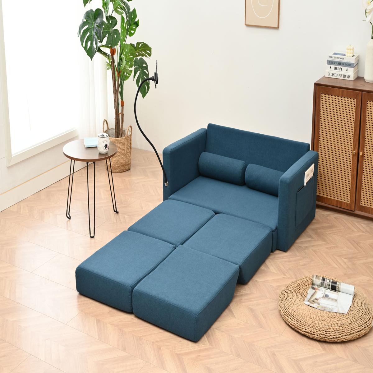 リビングルームのための調節可能な背もたれ付き収納、プルアウトベッド付きラブシートスリーパーソファ China Blue