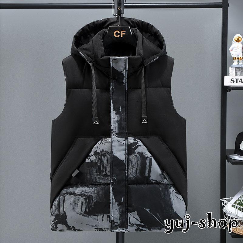 ダウンベスト ジャケット 袖なし フード付き メンズ インナーベスト 厚手 防寒 登山 防風 中綿ベスト ダウンコート ウルト 軽量 暖かい 秋冬 冬服 大きい