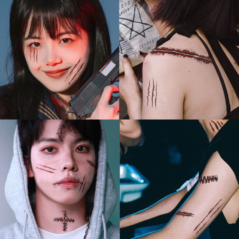 ハロウィンタトゥーシール 防水メイク10枚セット ハロウィン コスプレ クールメイク パーティーバーメイクフェイスシート 仮装 男女兼用 ハロウィン