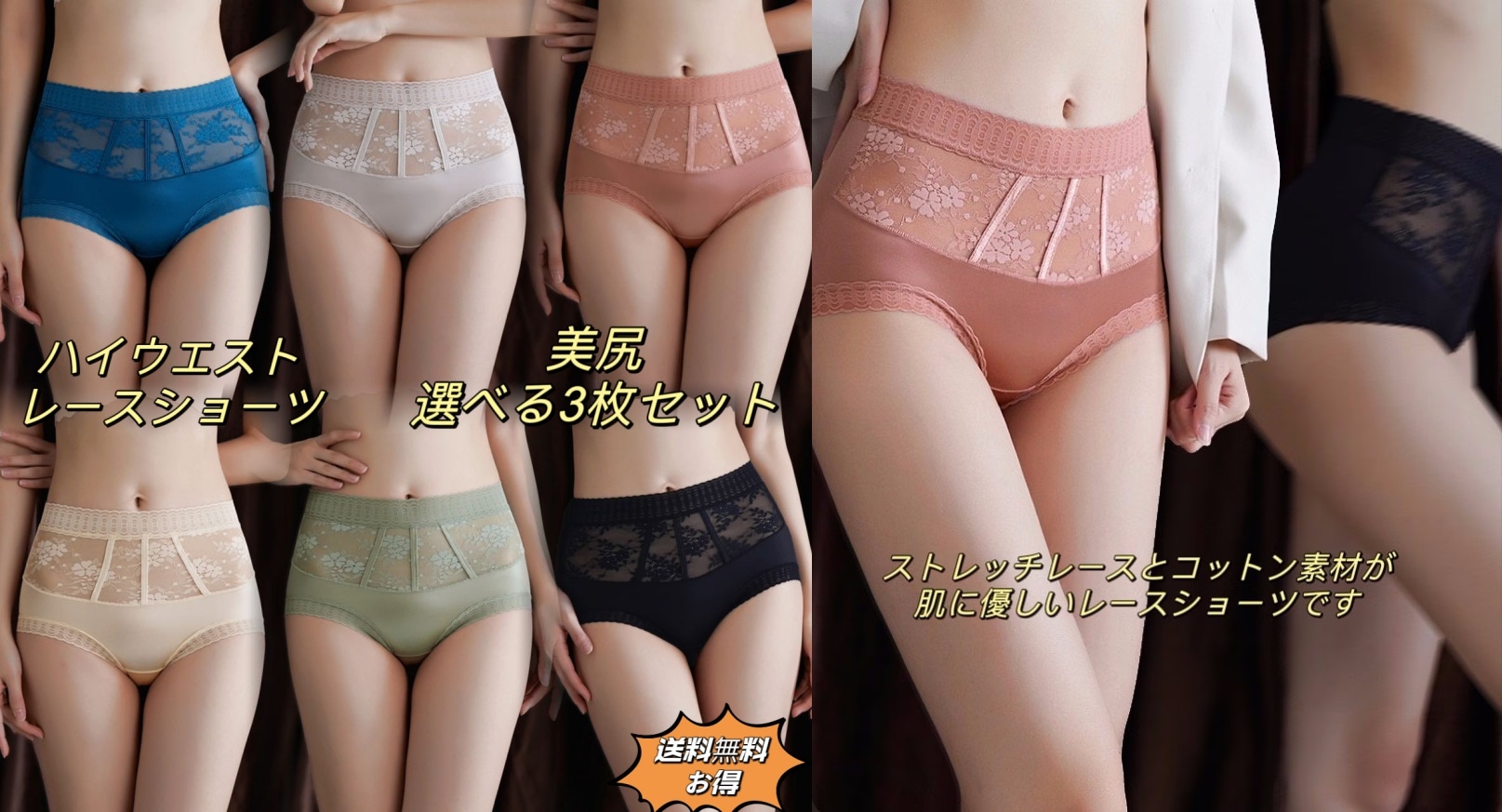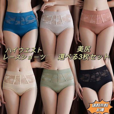 Sontinia 3枚セットレディース レースショーツ下着 パンツ 快適 無地 女性 深め 深履き お尻すっぽり桃尻 深ばき大きいサイズ ヒップアップ お腹 引き締め 通気パンティー