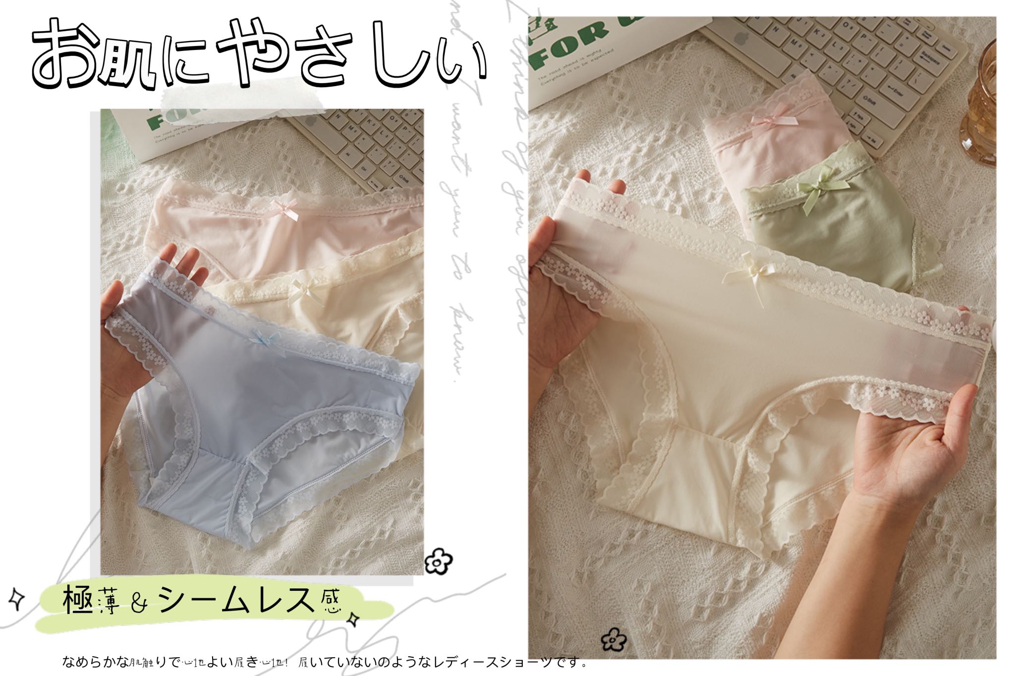 タイプ ショーツ: A1:ブラック +ホワイト+ピンク A2:ブルー+グリーン+ベージュ A3:ブラック+グリーン+ベージュ A4:ブラック*3 B1:ベージュ+あずきいろ+グリーン B2:ブラック+ブルー+グレー B3:ブラック+グリーン+ベージュ B4:ブラック+あずきいろ+グレー B5:ブラック*3 C1:ベージュ+グレー+グリーン C2:ブラック+ミストブルー+グリーン C3:ブラック+ベージュ+グレー C4:ブラック*3