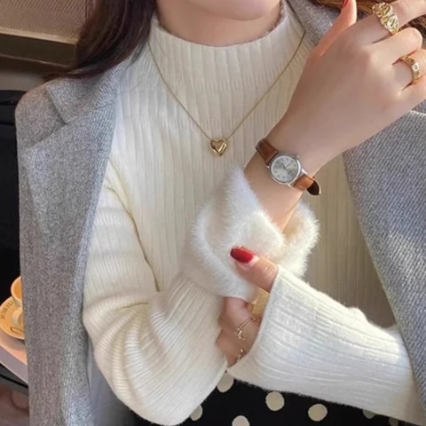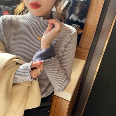 裏起毛5TYPE ニットセーター保温 暖かい 上質 リブ ニット トップス レディース タイト シルエット ストレッチ カットソー 無地 秋冬 トップス