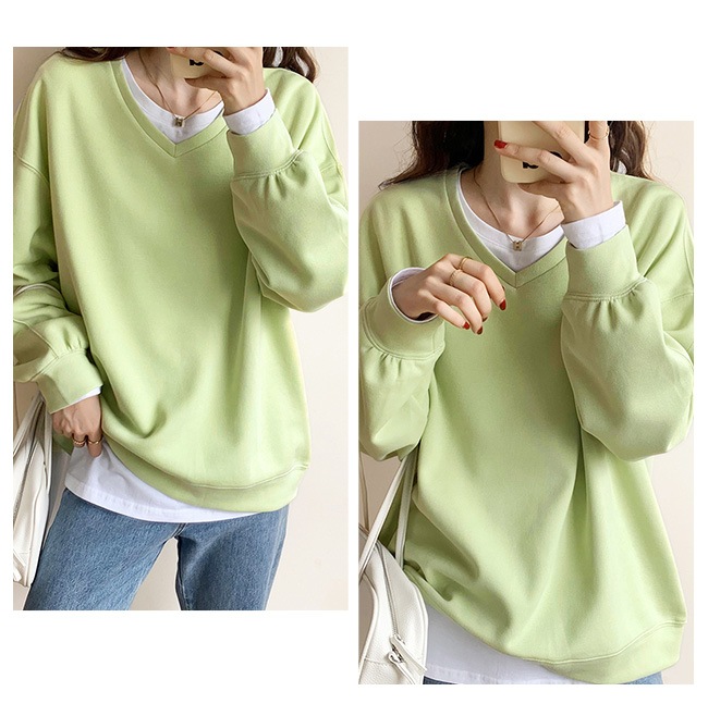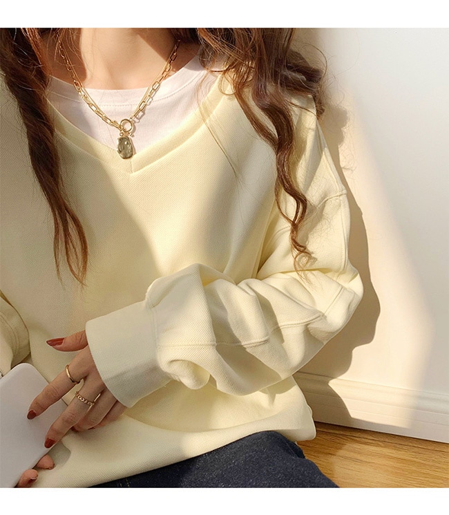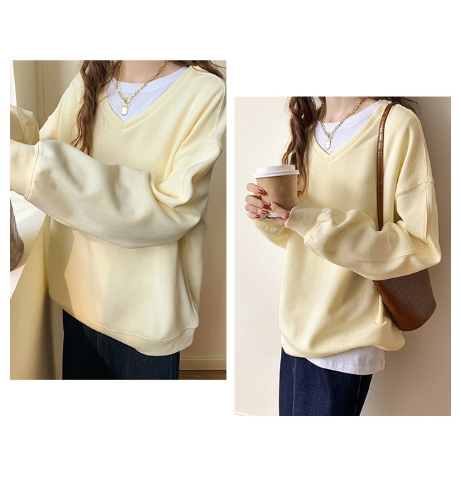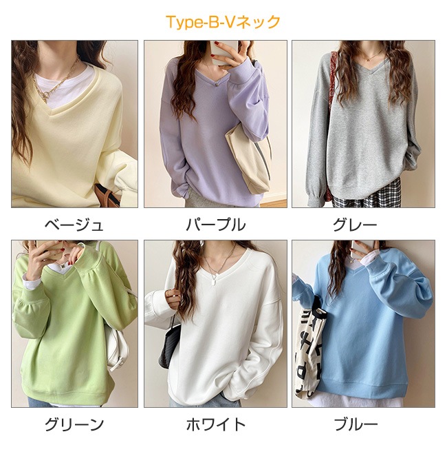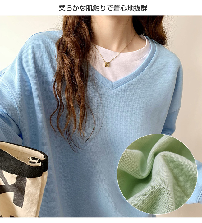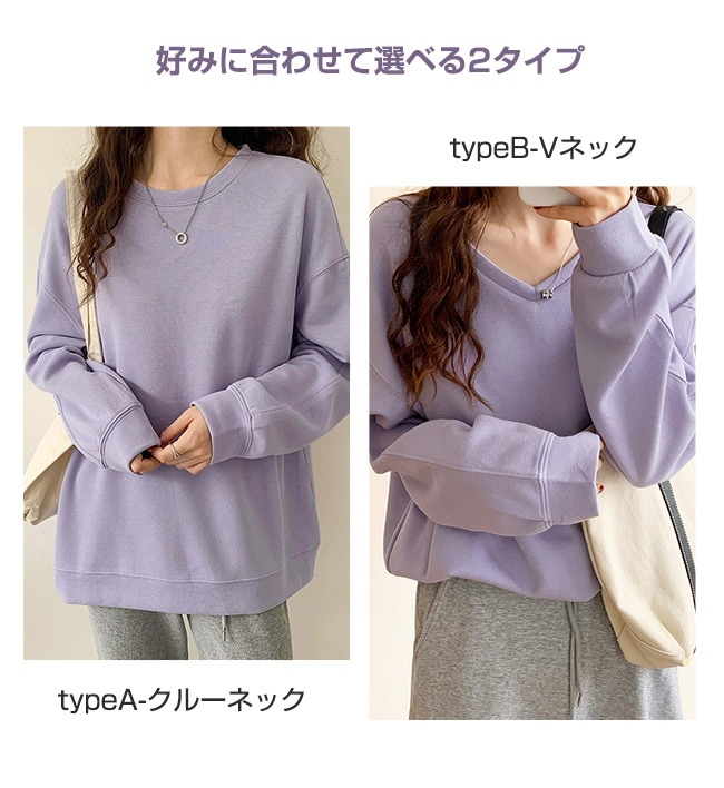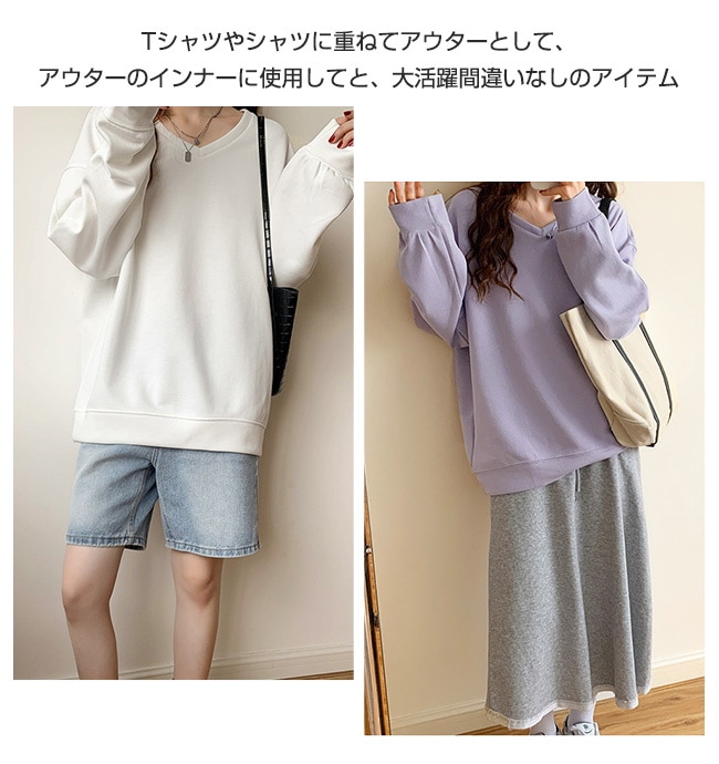 トレーナー レディース スウェット 長袖 シンプル トップス プルオーバー 秋 春 スポーツ 着痩せ 体型カバー クルーネック Vネック カットソー レイヤード 重ね着