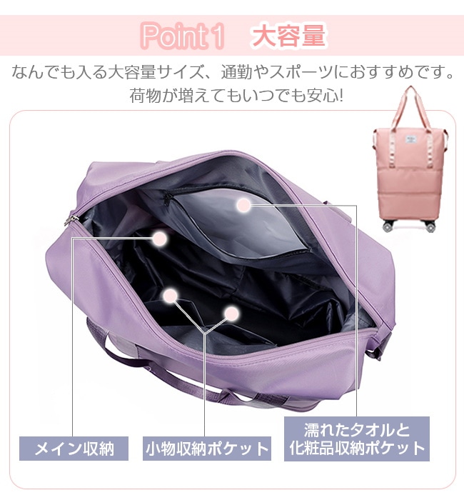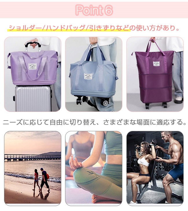 キャリーバッグ ボストンバッグ 3way 拡張可 キャスター付き 折りたたみ 乾湿分離 大容量 軽量 ショルダーバッグ スーツケース 旅行バッグ トートバッグ