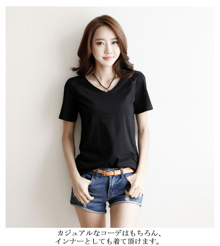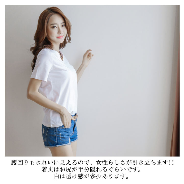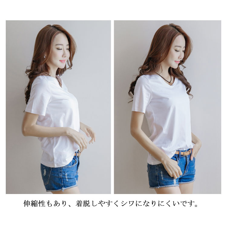半袖Tシャツレディーストップス無地カットソーVネック鉄板インナーきれいめシンプル薄裾ギャザーコットン白Tシャツ大きいサイズオーバーサイズビッグシルエットフレンチスリーブ
