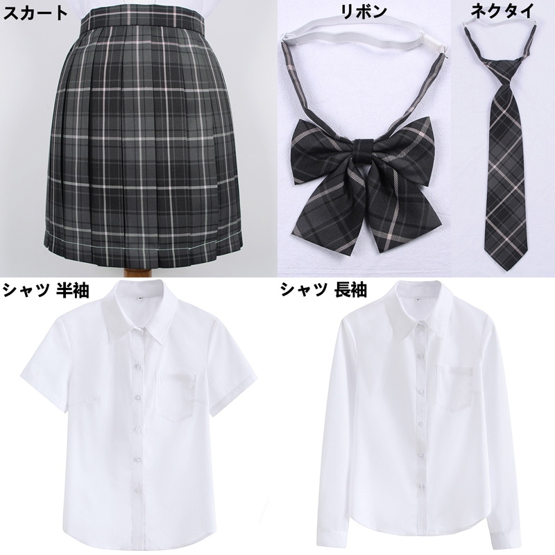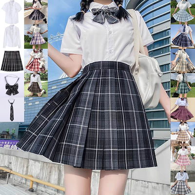 スカートセット 40色 女子高生 JK 学生服 可愛い かわいい 学院 高校 スクール コスプレ仮装 学園祭文化祭 半袖長袖 シャツ リボン ネクタイ ミニ プリーツ チェック 制服スカート