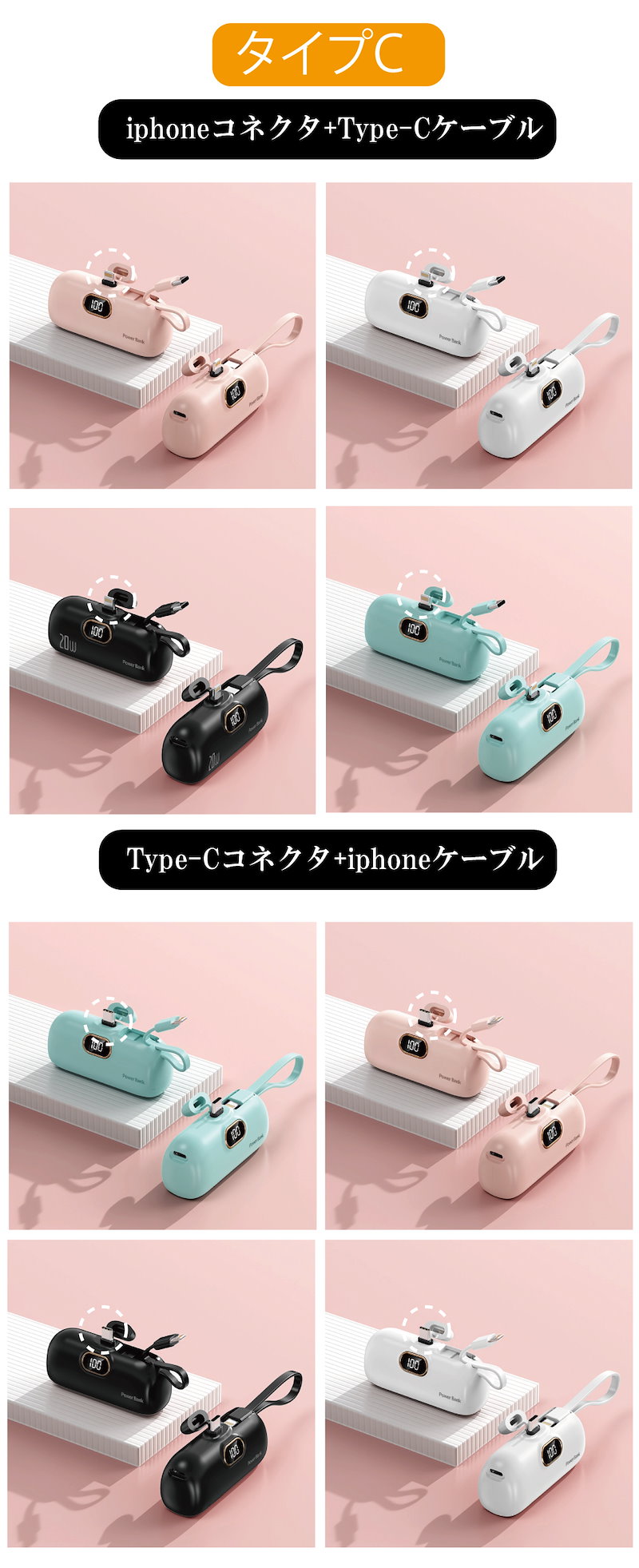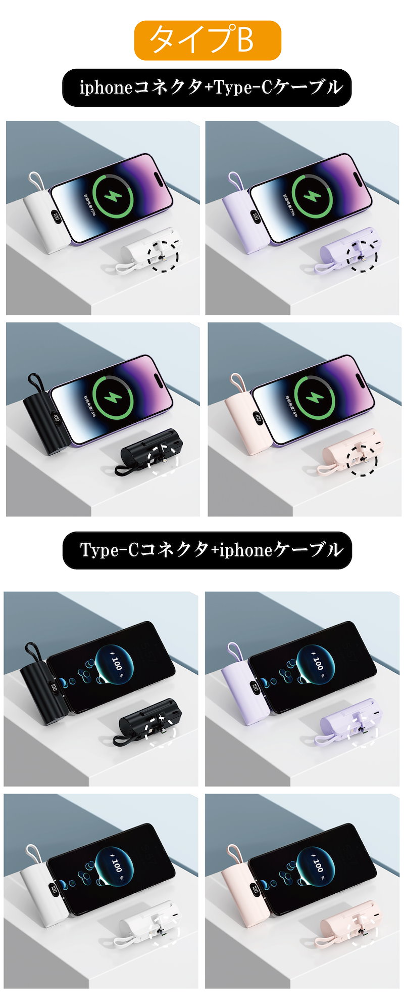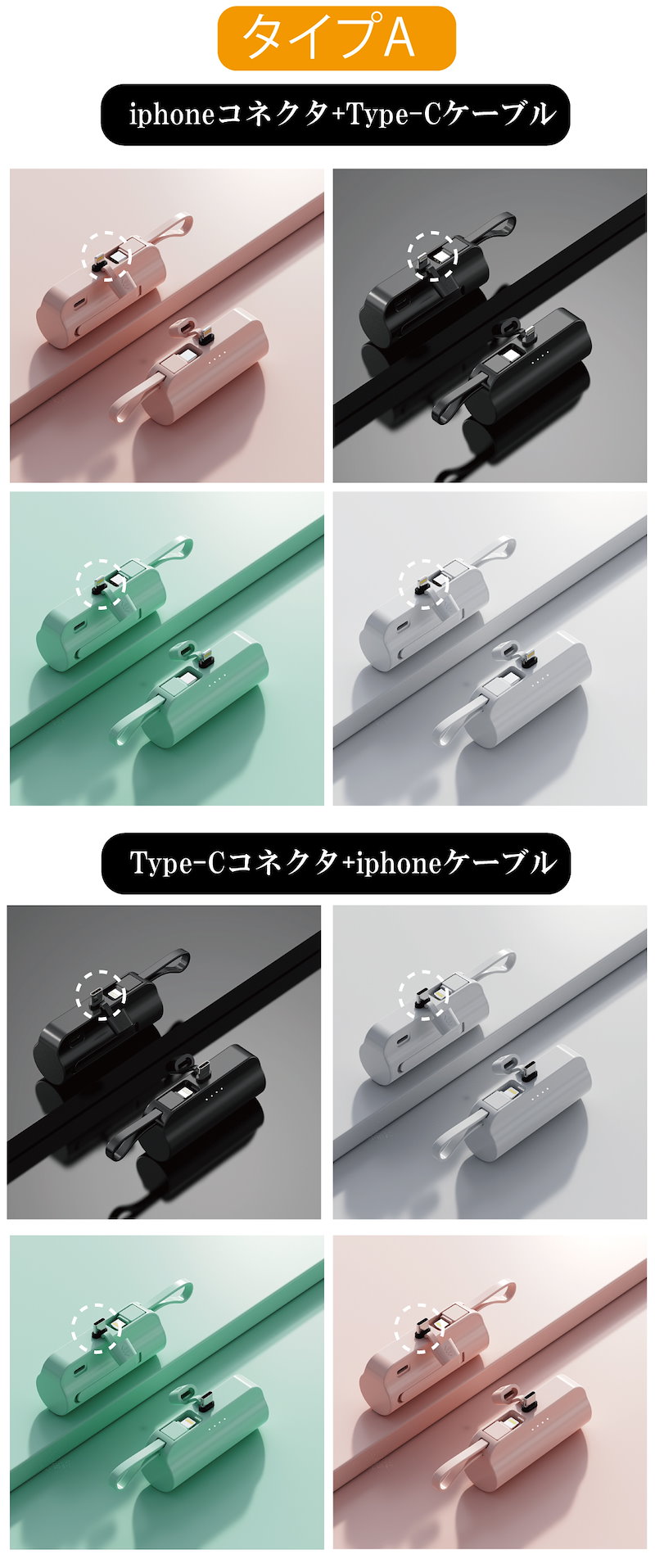 コネクタ: iphoneコネクタ+Type-Cケーブル Type-Cコネクタ+iphoneケーブル