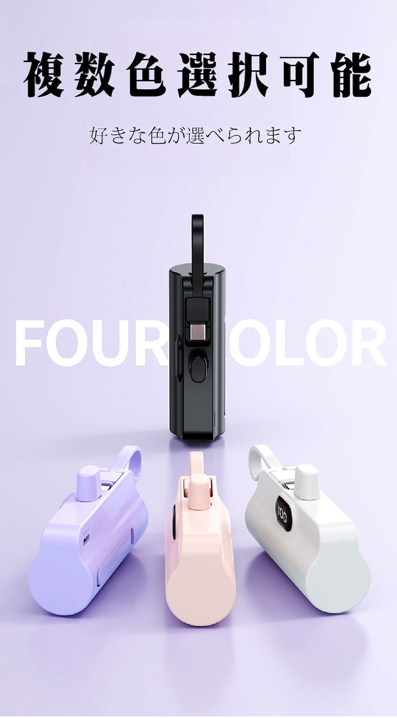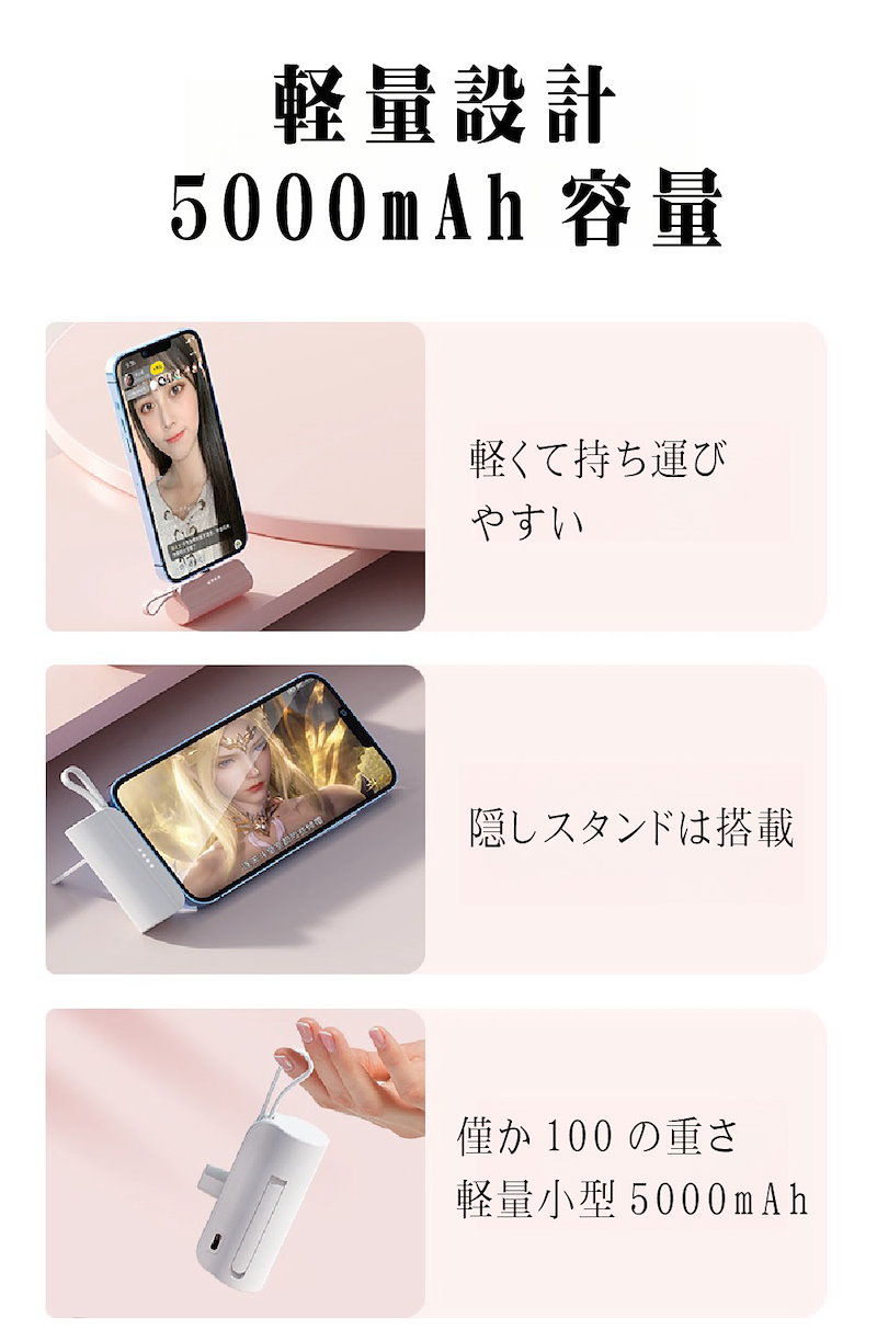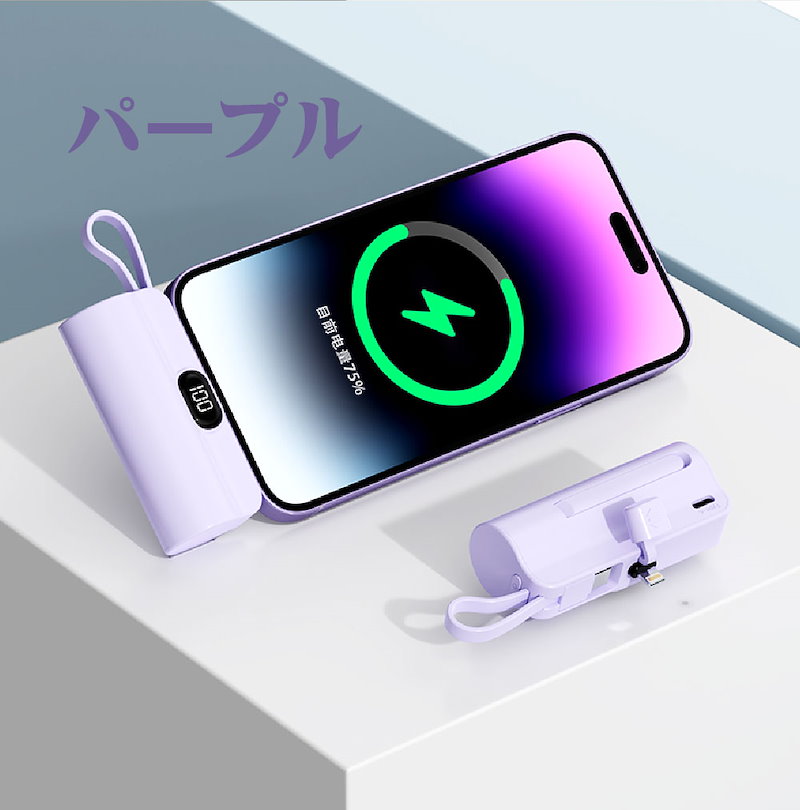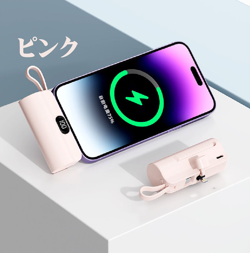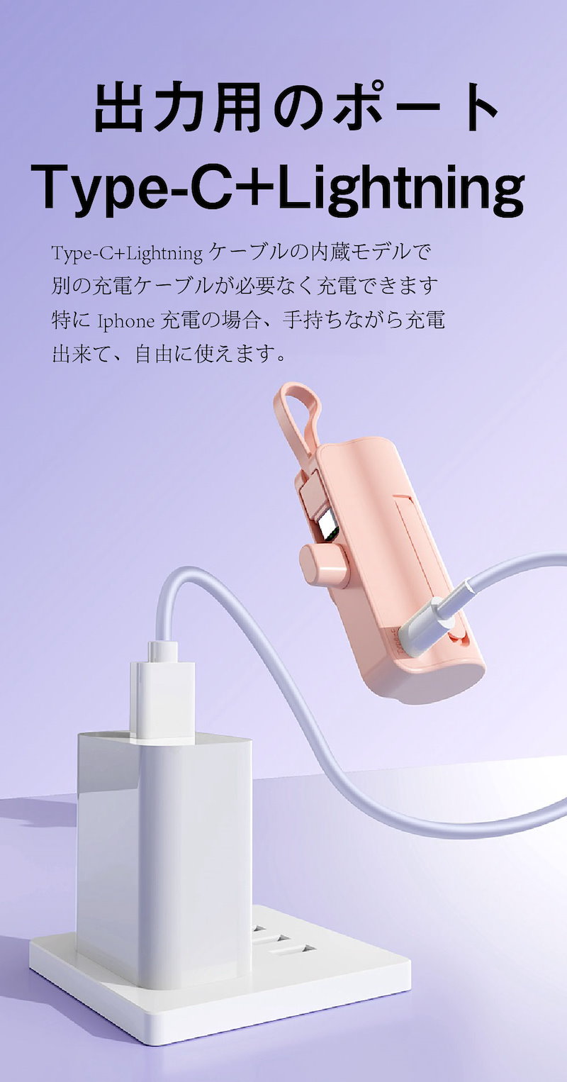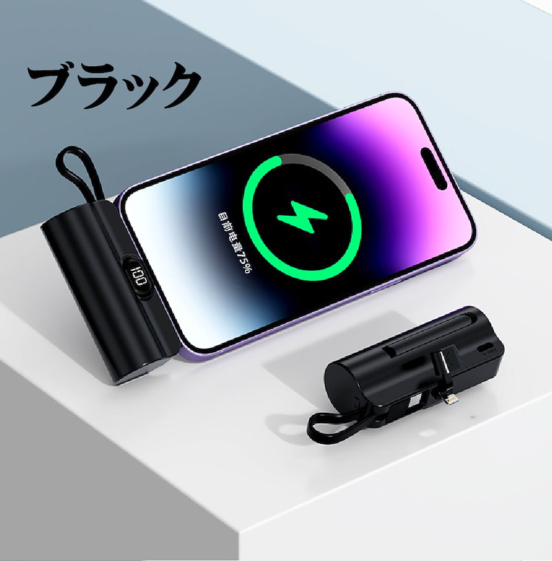 2024年最新 iPhone15対応可モバイルバッテリーPSE認証小型 5000mAhiPhone typeC 軽量2台同時充電持ち運び便利残電量表示ケーブル内蔵 軽量