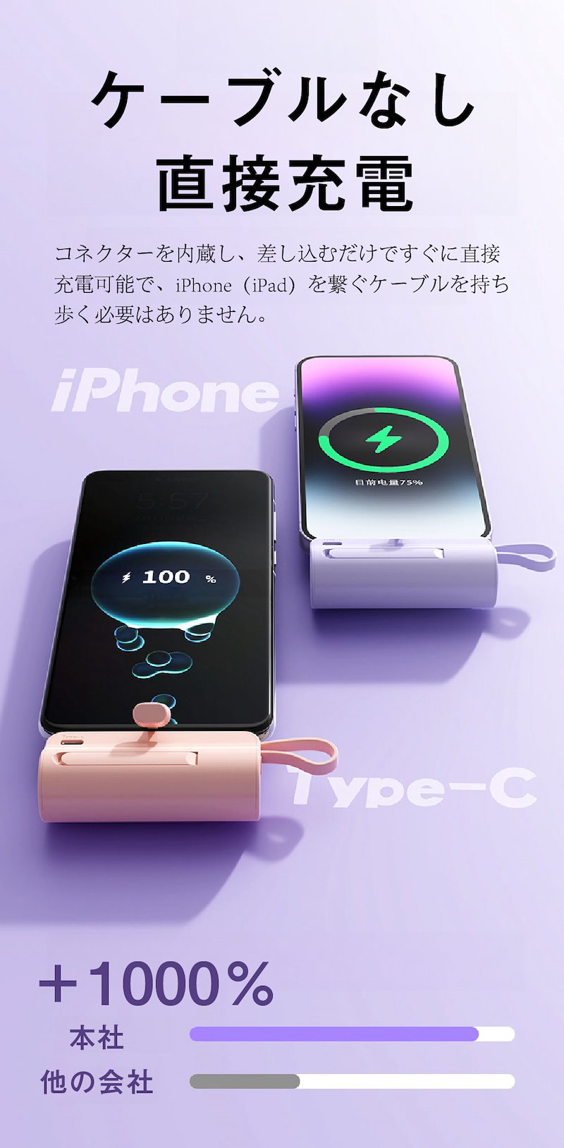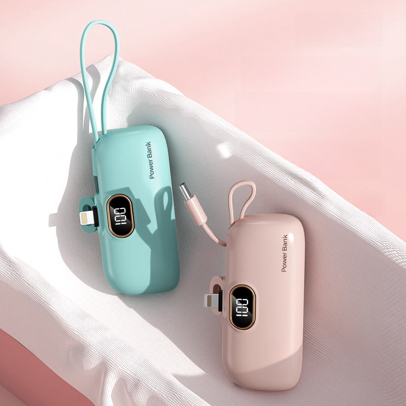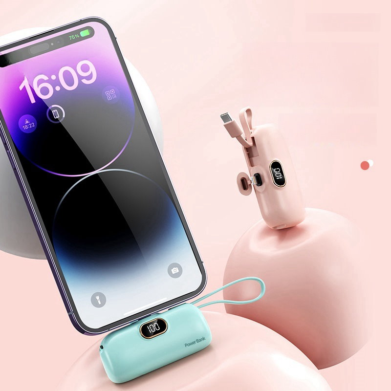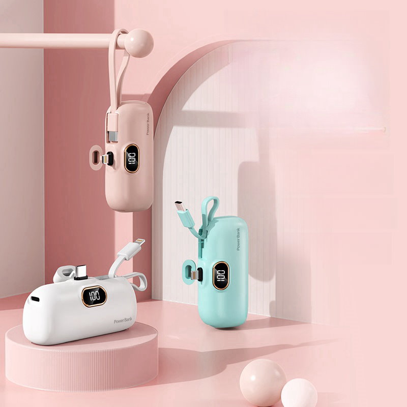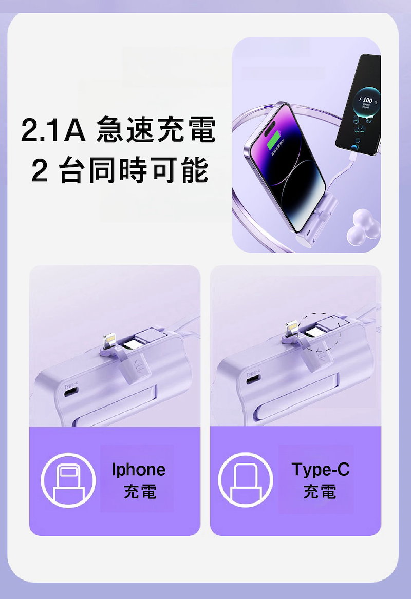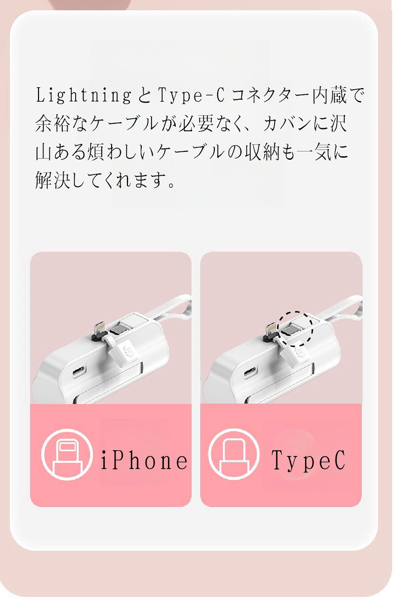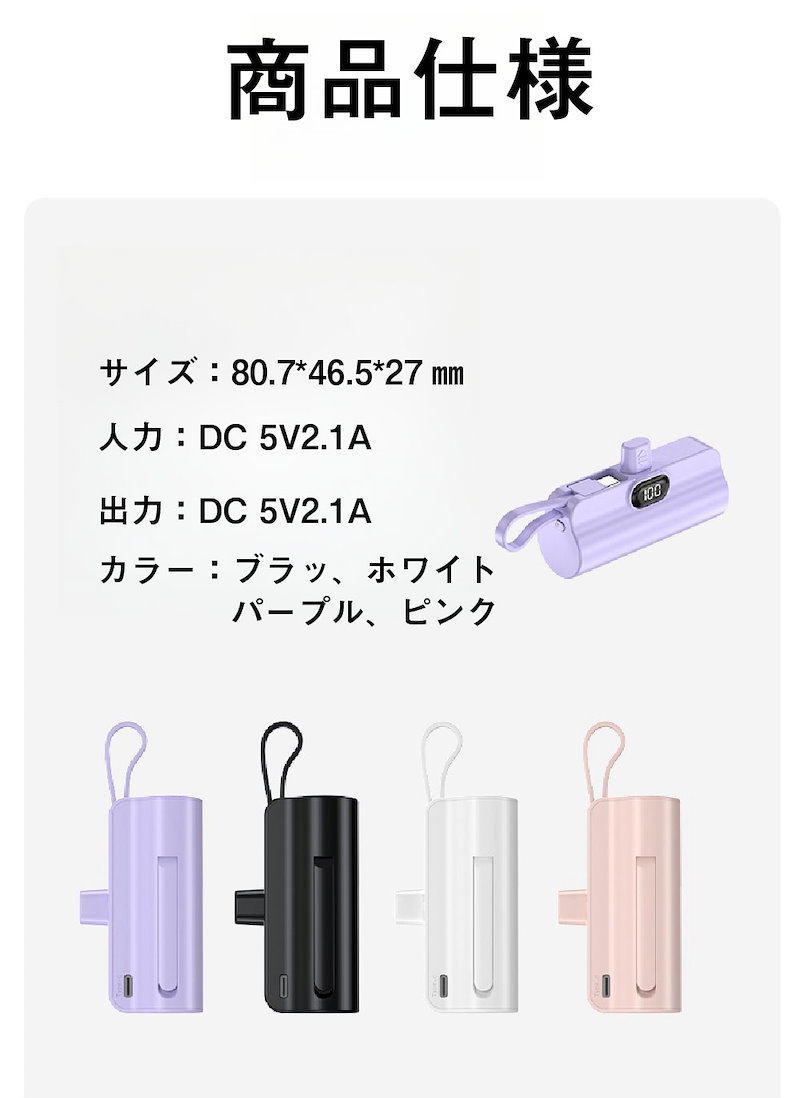 2024年最新 iPhone15対応可モバイルバッテリーPSE認証小型 5000mAhiPhone typeC 軽量2台同時充電持ち運び便利残電量表示ケーブル内蔵 軽量