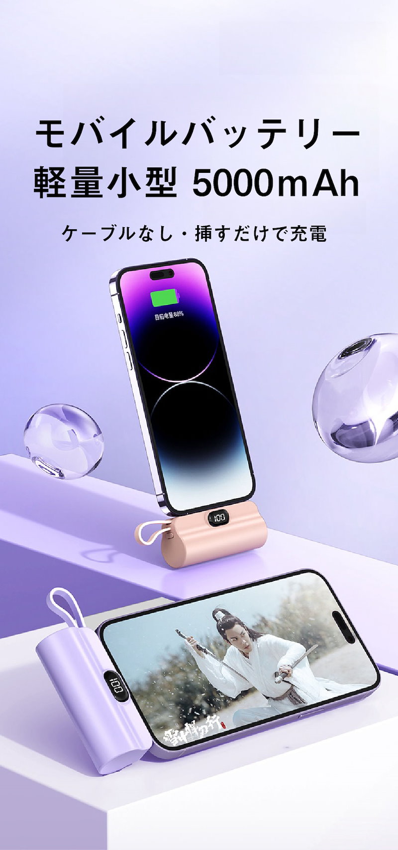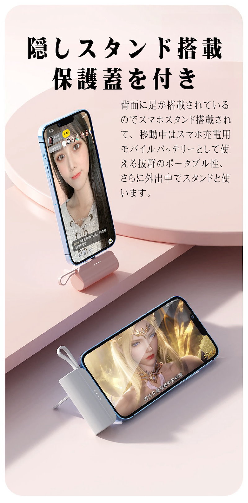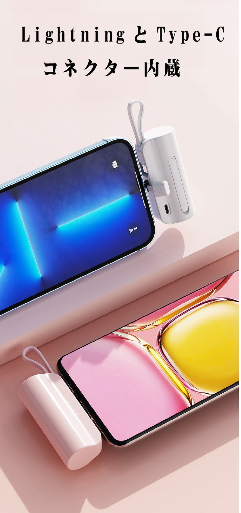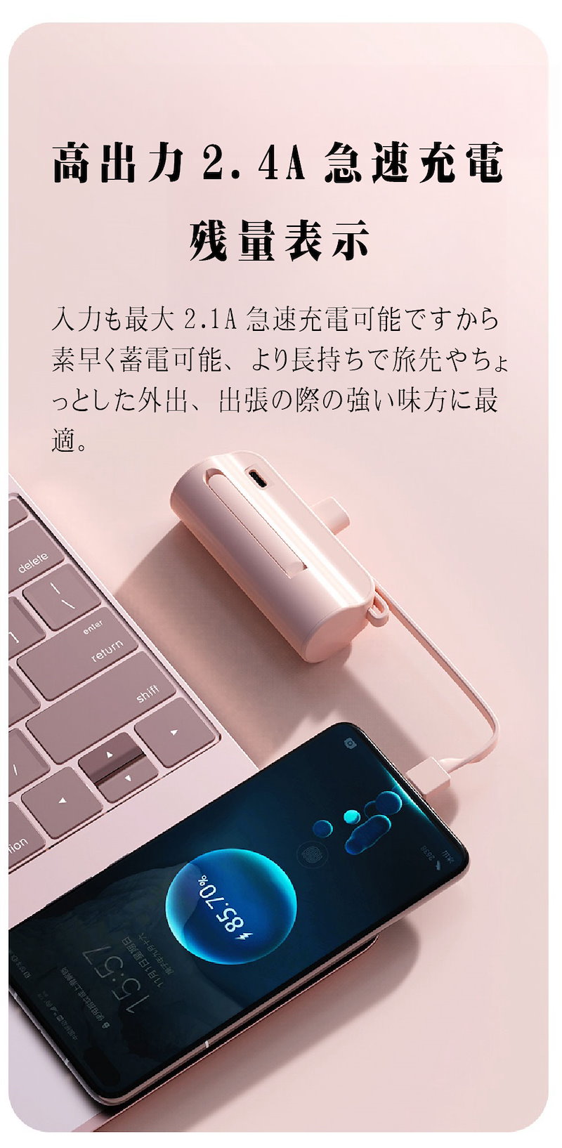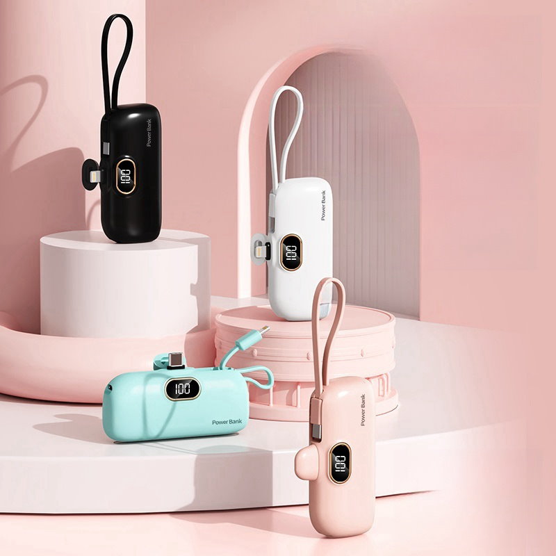2024年最新 iPhone15対応可モバイルバッテリーPSE認証小型 5000mAhiPhone typeC 軽量2台同時充電持ち運び便利残電量表示ケーブル内蔵 軽量