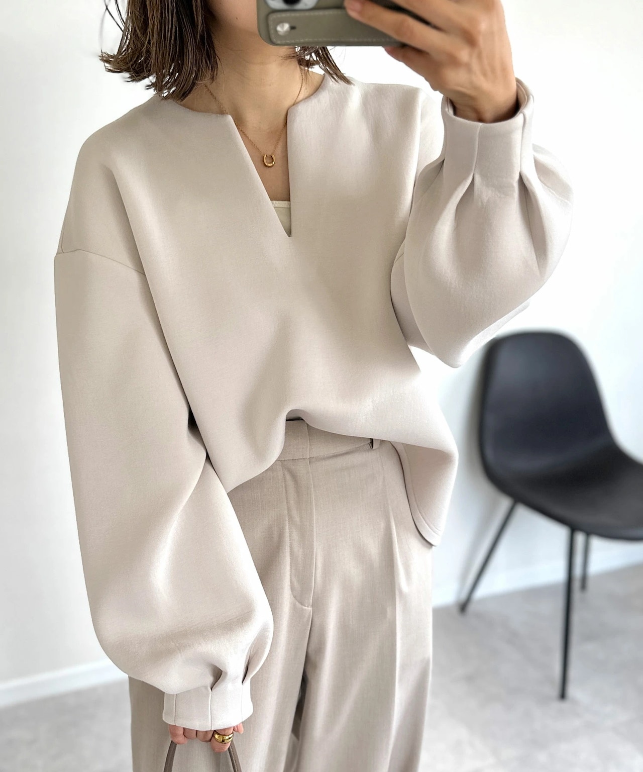 シアースリーブ ドッキングシャツ ボウタイシャツブラウス