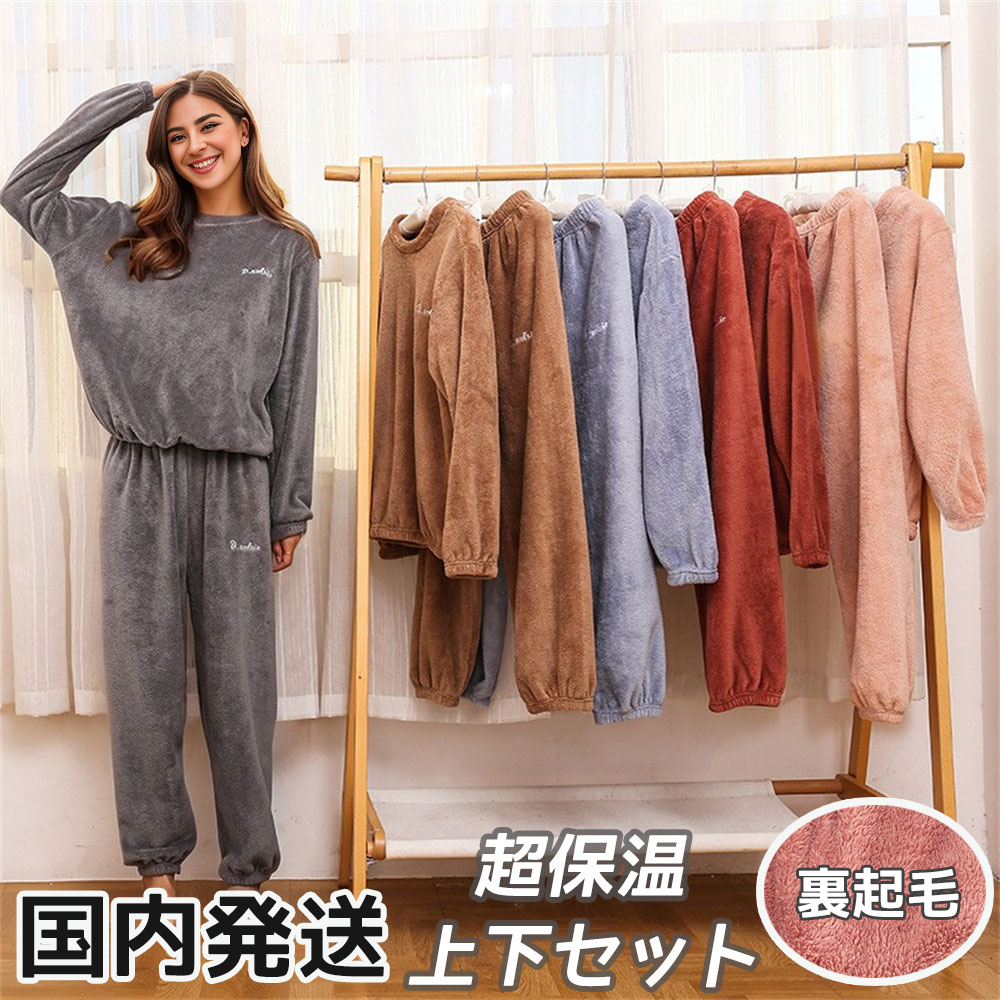 裏起毛 柔らかい ルームウェア 超保温 パジャマ 秋 冬 レディース セットアップ もこもこパジャマ ふんわり 肌触り 部屋着 スウェット+ズボン 上下セット トレーナー ジャージ