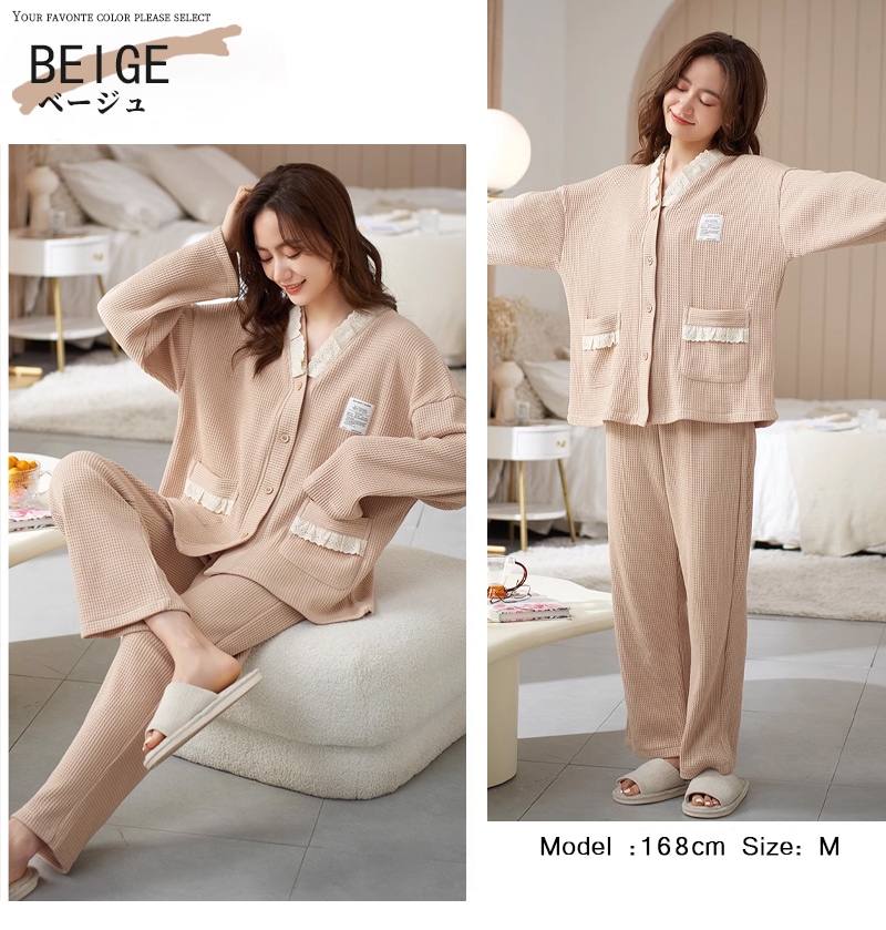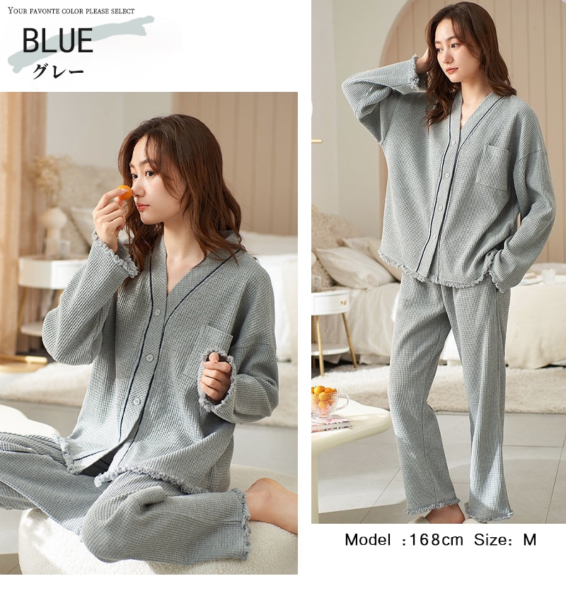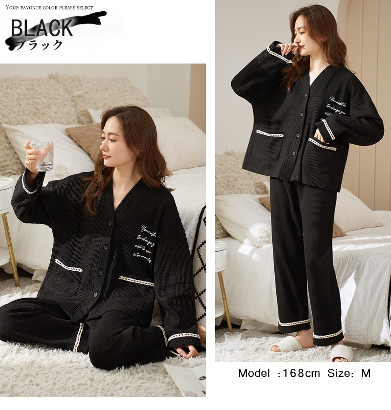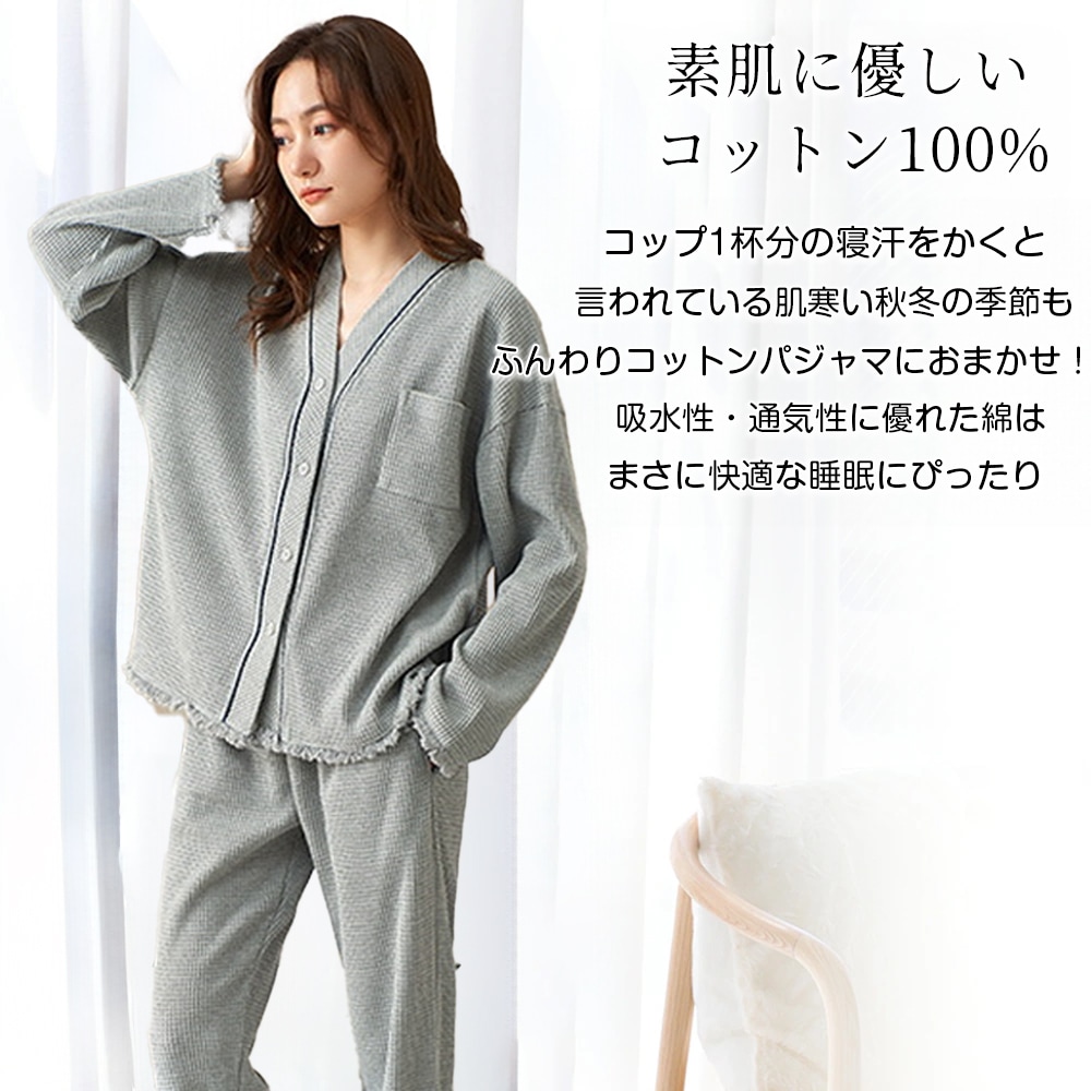 パジャマ レディース 綿 春 夏 肌触り ルームウエア 部屋着 前開きパジャマ 前開き 長袖 秋冬 ナイトウエア Vネック コンフォート 肌触り 長袖パジャマ 入院