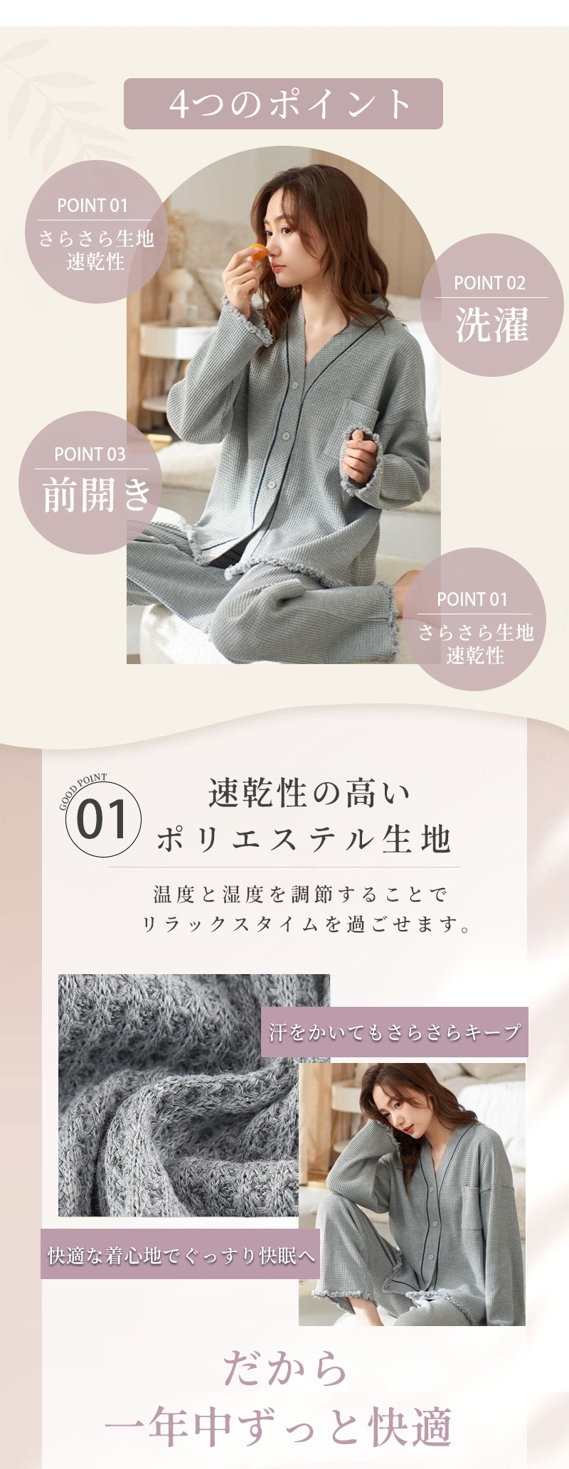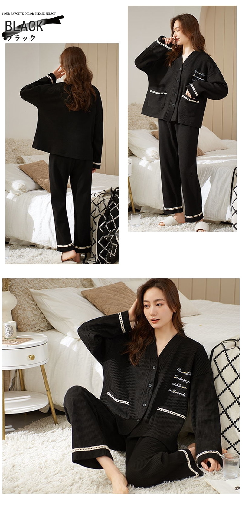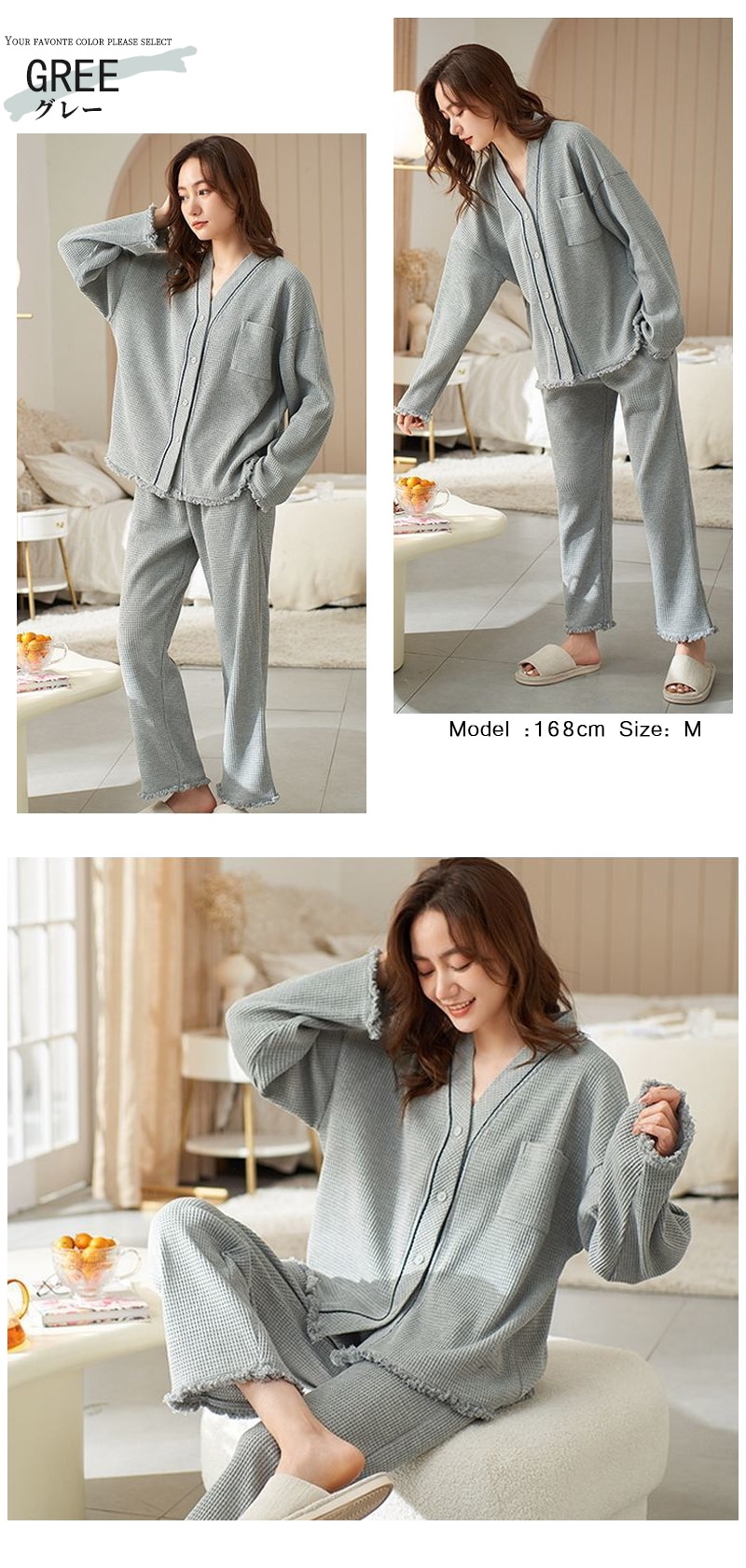 パジャマ レディース 綿 春 夏 肌触り ルームウエア 部屋着 前開きパジャマ 前開き 長袖 秋冬 ナイトウエア Vネック コンフォート 肌触り 長袖パジャマ 入院