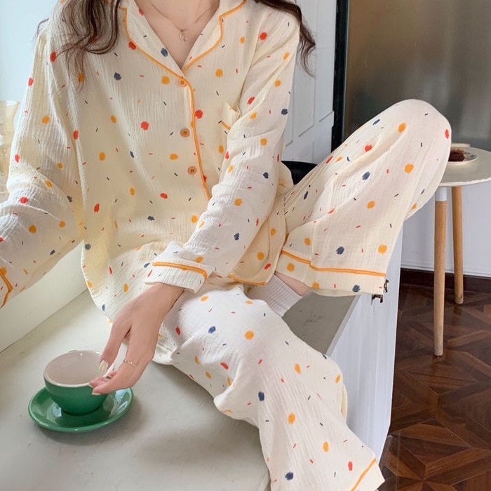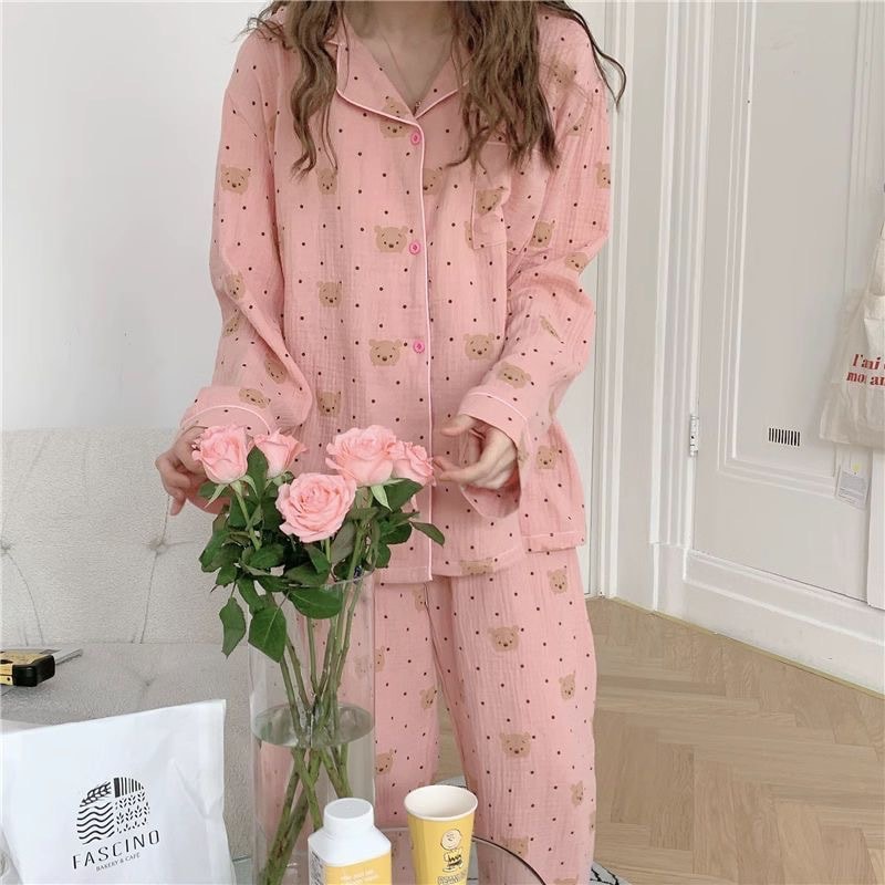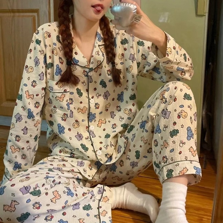 パジャマコレクション 長袖 パジャマ レディース 綿 かわいい ルームウェア 肌に優しい 上下セット ロングパンツ 防寒 柔らかい肌触り 韓国 セットアップ 吸汗通気 部屋着 寝間着 女の子 秋冬春
