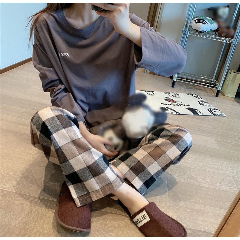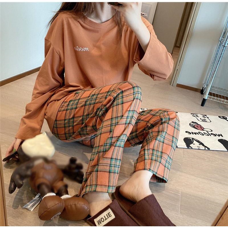 2024秋冬新登場 パジャマ セットアップ ルームウェア 上下セット レディース ナイトウェア チェック柄 部屋着 長袖 長ズボン 寝間着 薄手 ゆったり 通気性 秋 春 韓国 ファッション