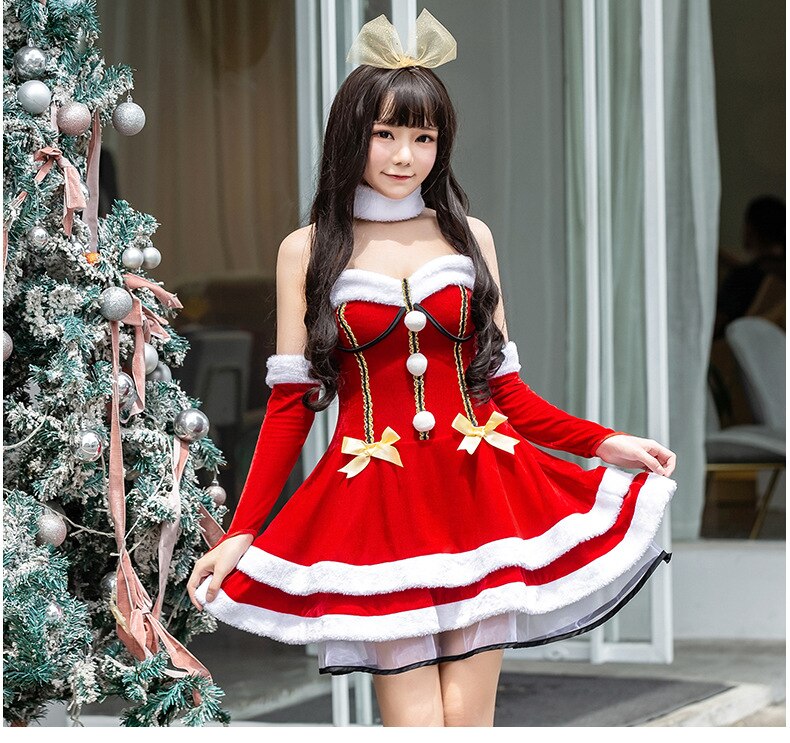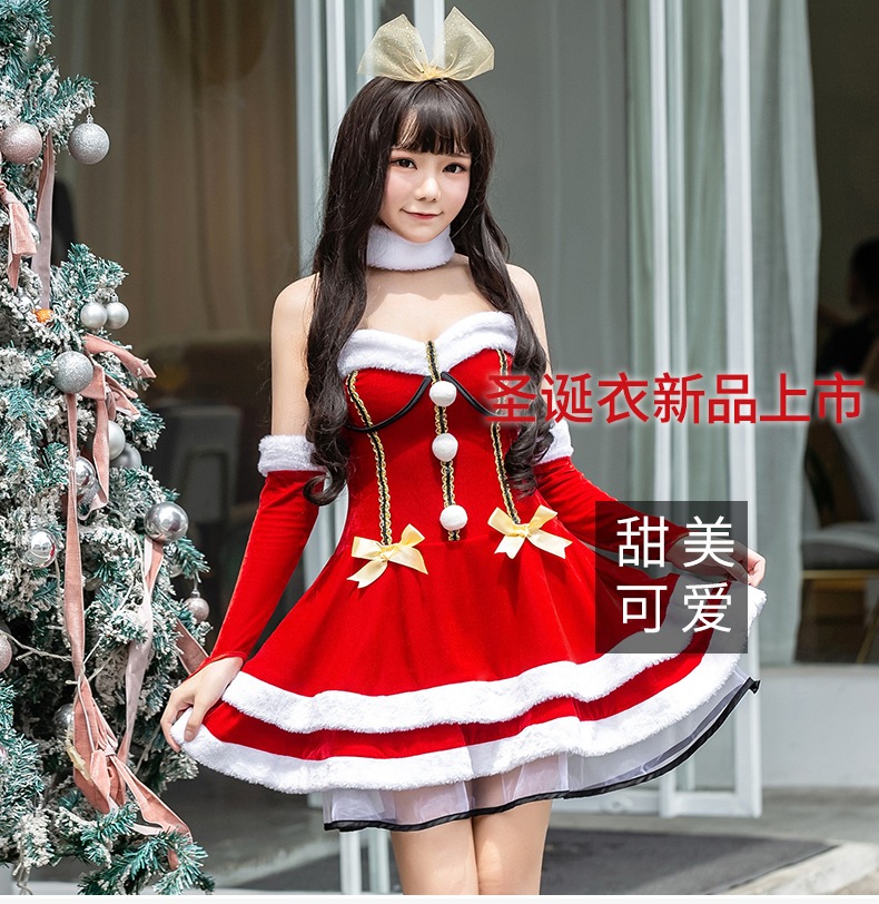 ハロウィンクリスマスパーティー映画テレビ気質女性レッドサンタクロースコスプレショー服ファッションファスナー個性かわいい仮装舞踏会お衣装を演じるワンピース3点セット 涼しく楽ちんセットアップ
