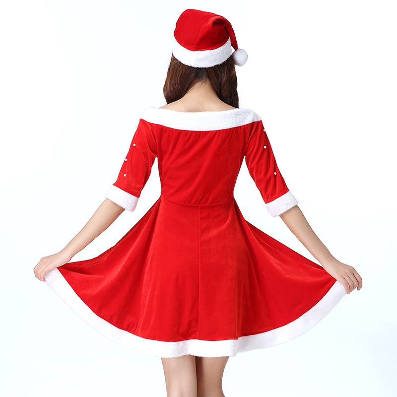 ハロウィンクリスマスパーティー映画テレビセクシー気質女性レッドサンタクロースコスプレショー服ファッションファスナー個性かわいい仮装舞踏会お衣装を演じるベルベットワンピース2点セット 涼しく楽ちんセッ