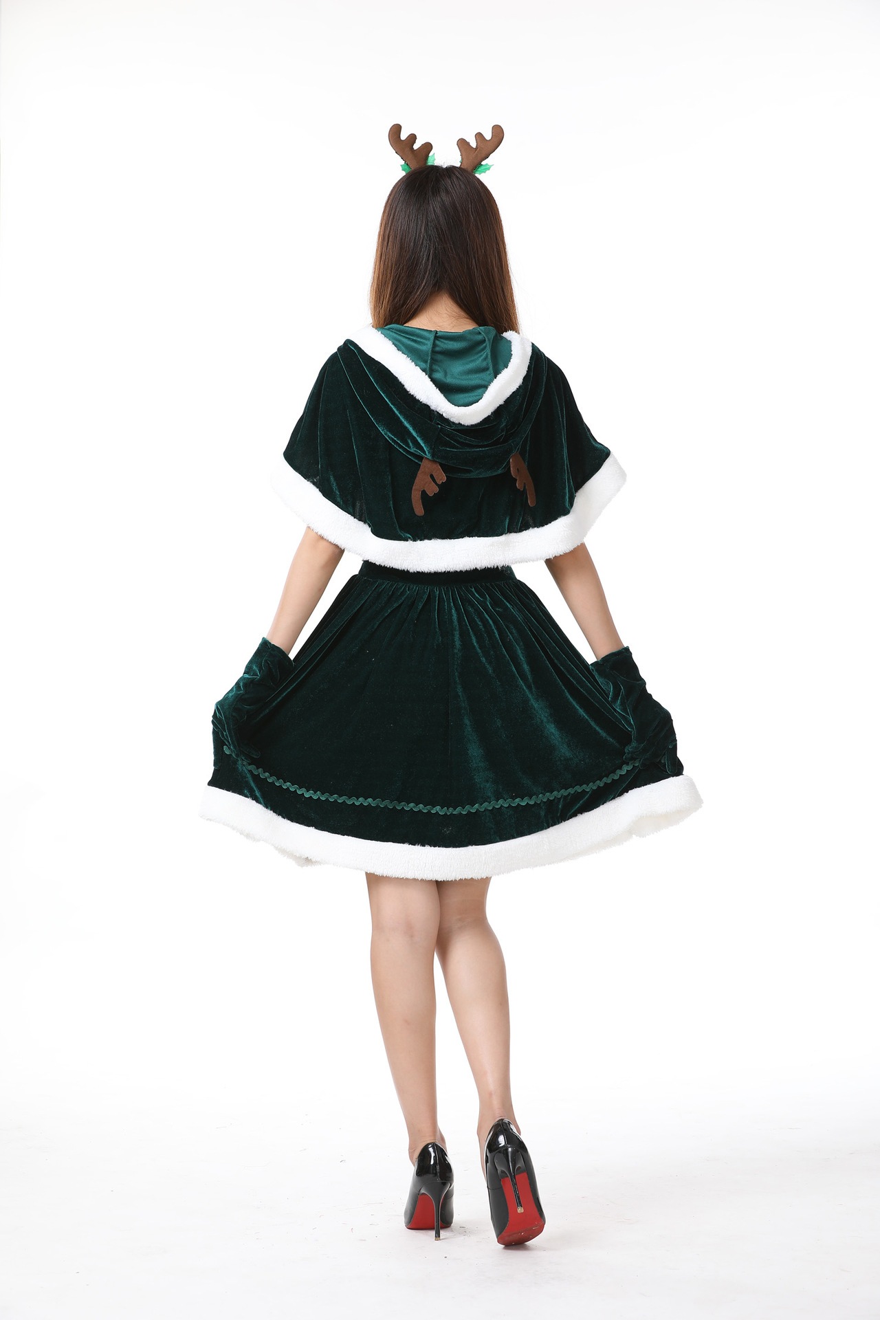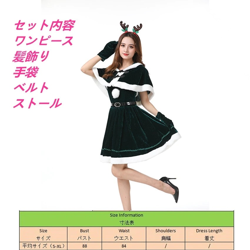 ハロウィンクリスマスパーティー映画テレビセクシー気質女性サンタクロースヘラジカ匹コスプレショー服ファッションファスナー個性かわいい仮装舞踏会お衣装を演じるワンピース5点セット 涼しく楽ちんセットアッ